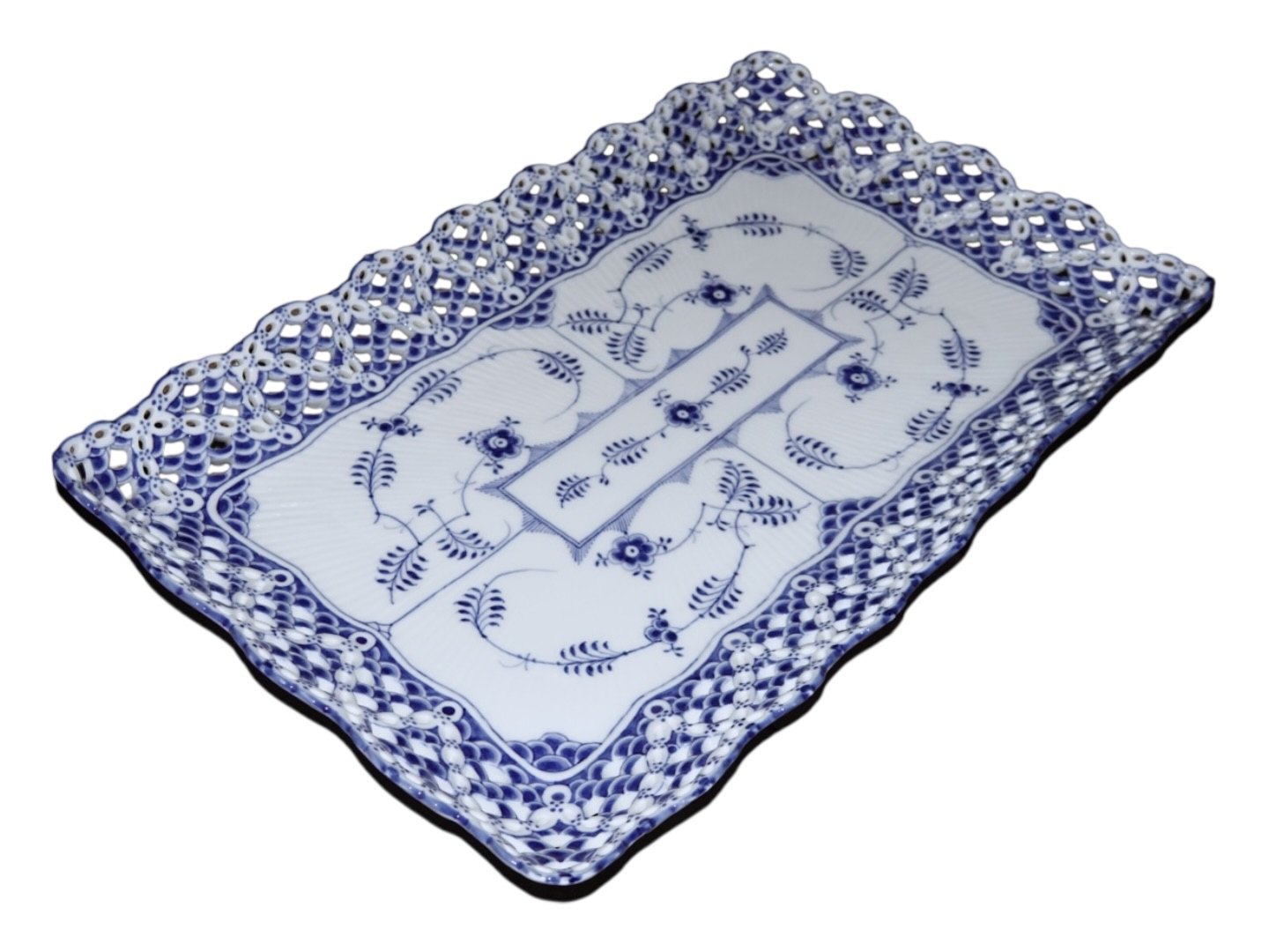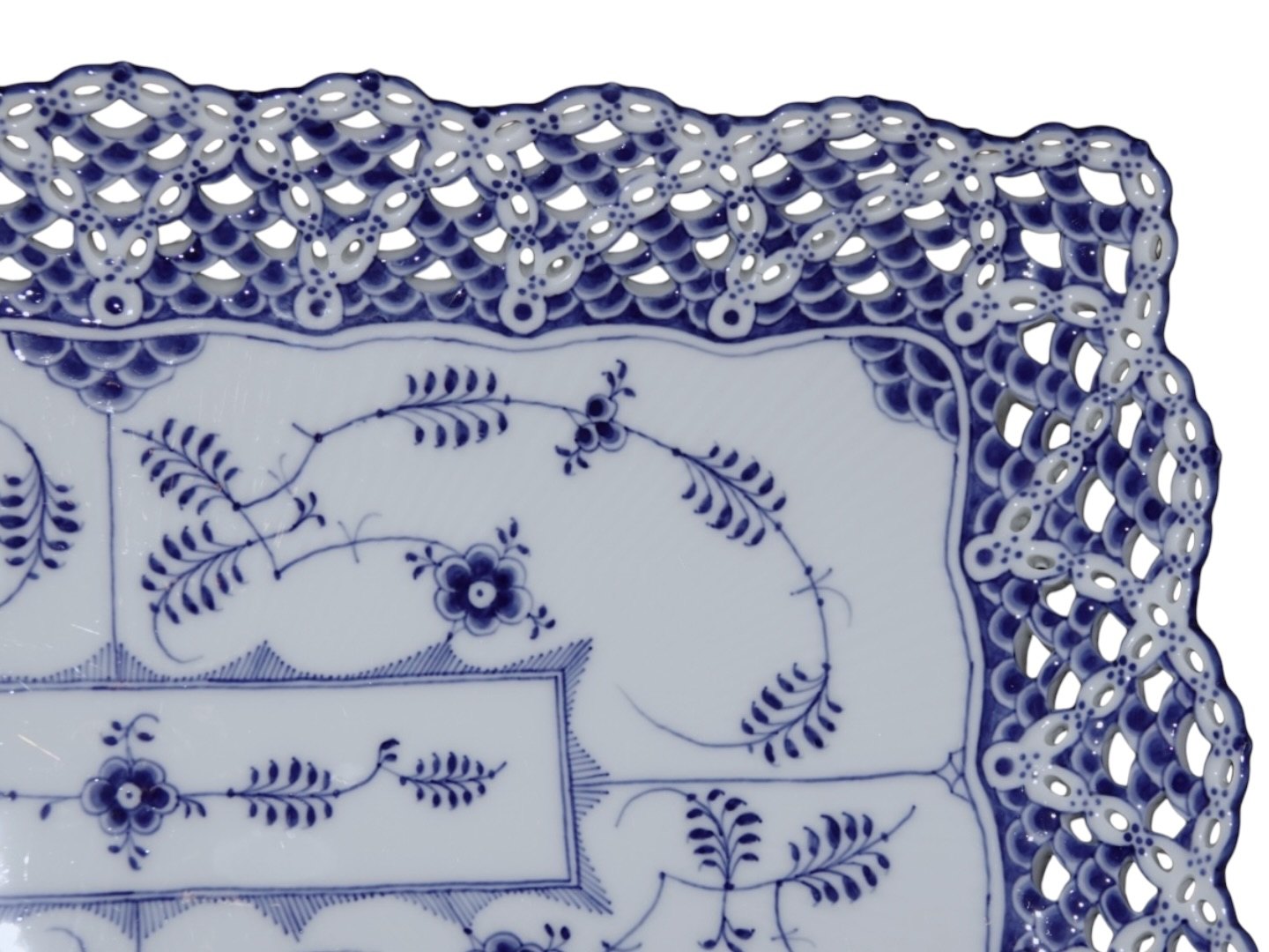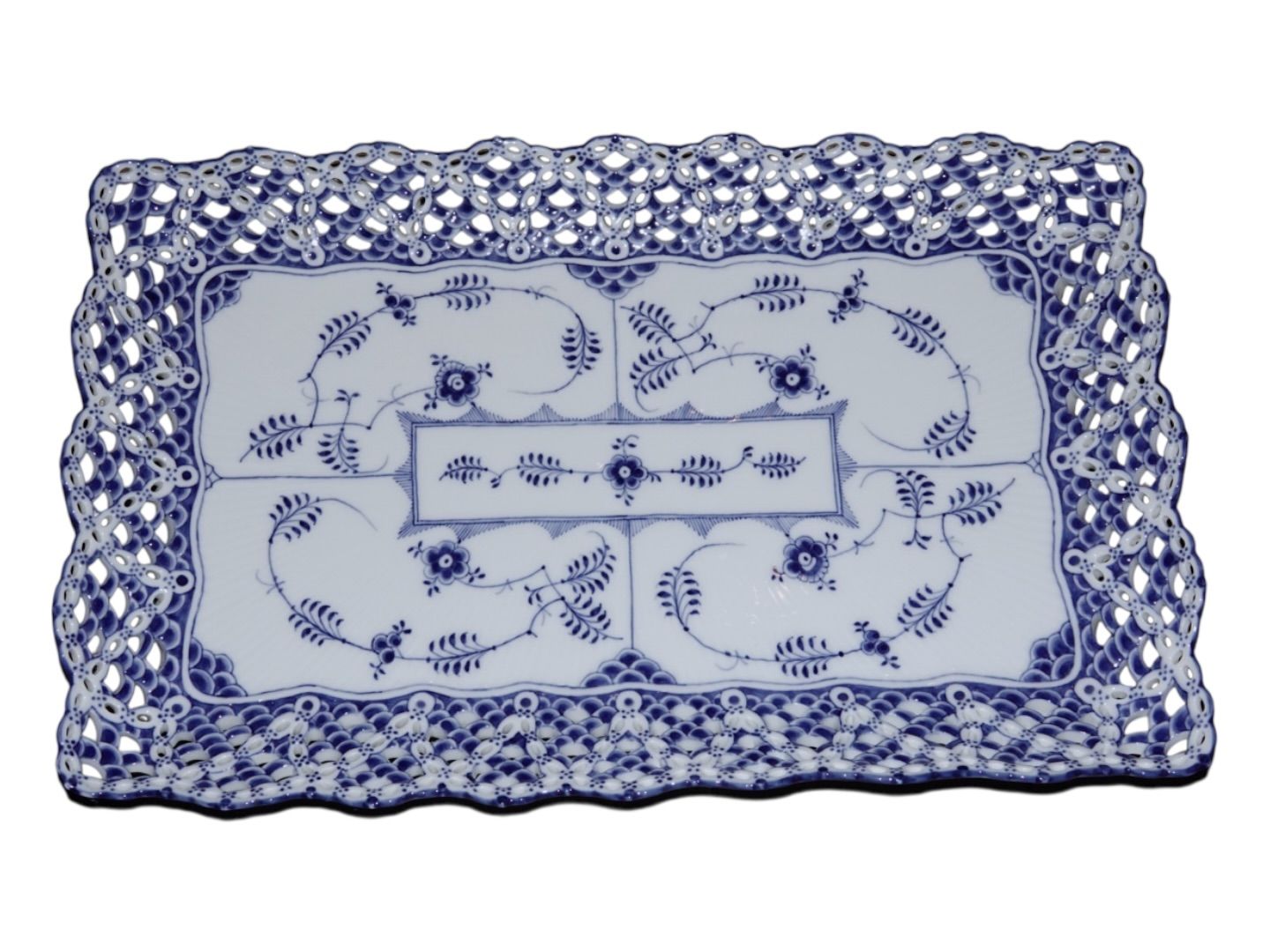 Beskrivelse: Royal Copenhagen Musselmalet Helblonde, stort og meget sjældent isfad / bakke.