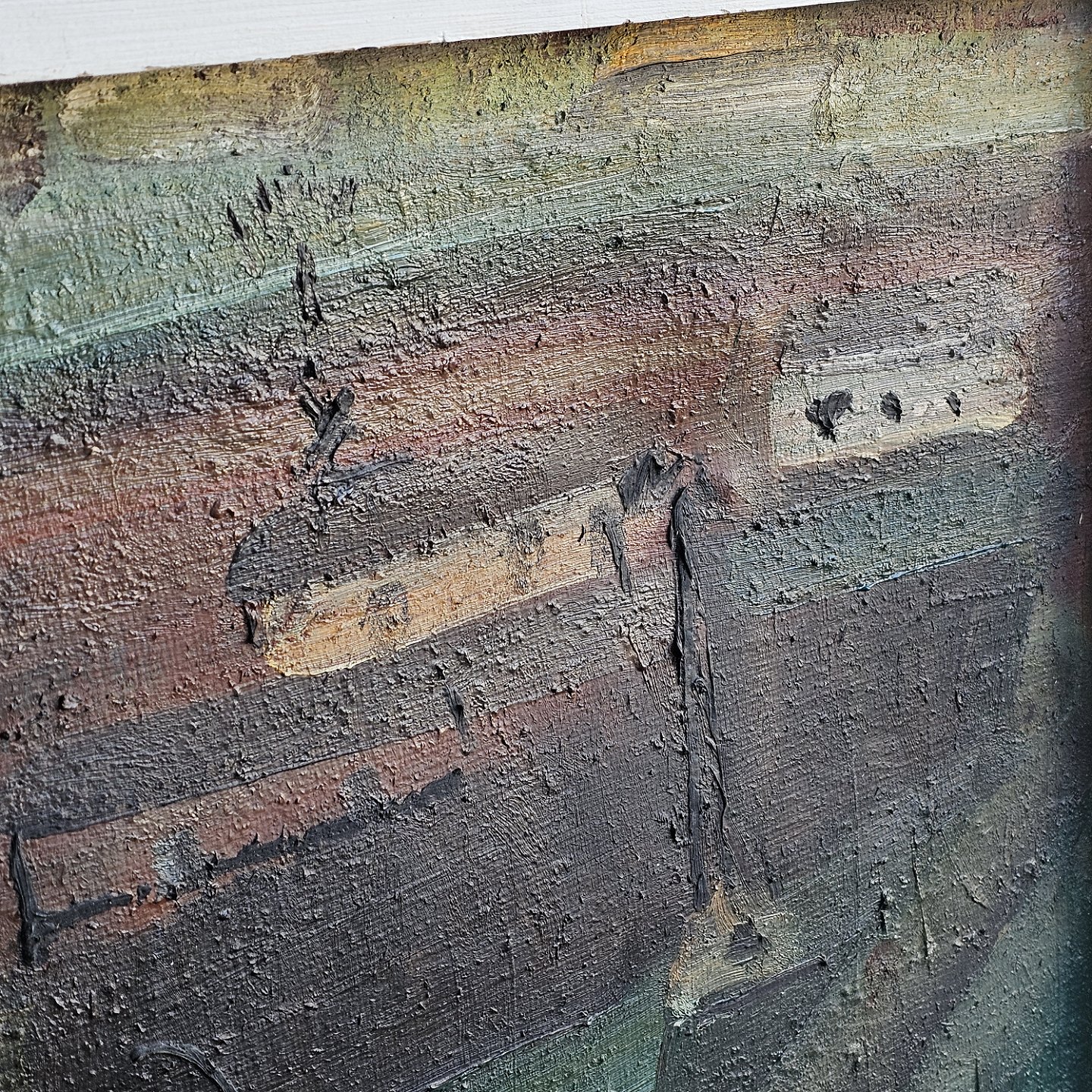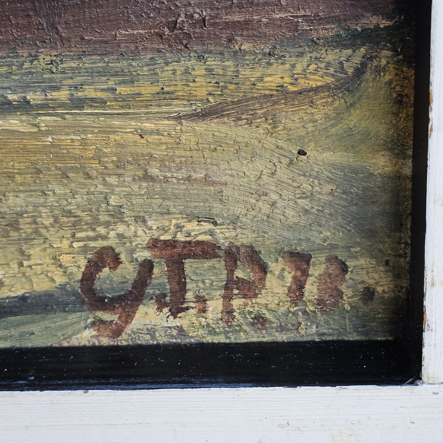 Beskrivelse: Oliemaleri på lærred med hvid ramme