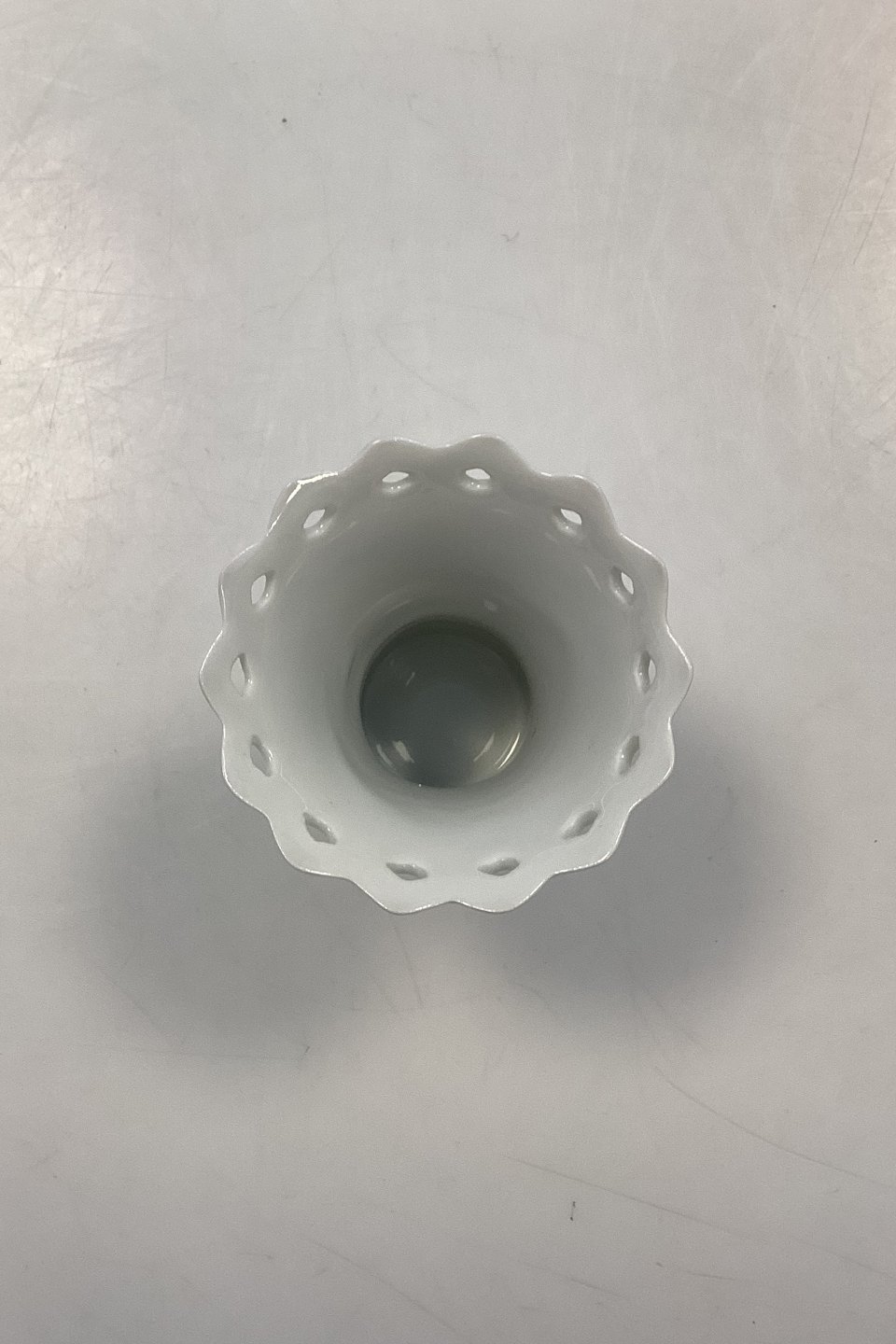 Beskrivelse: Bing og Grøndahl Kronberg Lille Vase No. 673 med Gennembrudt Kant