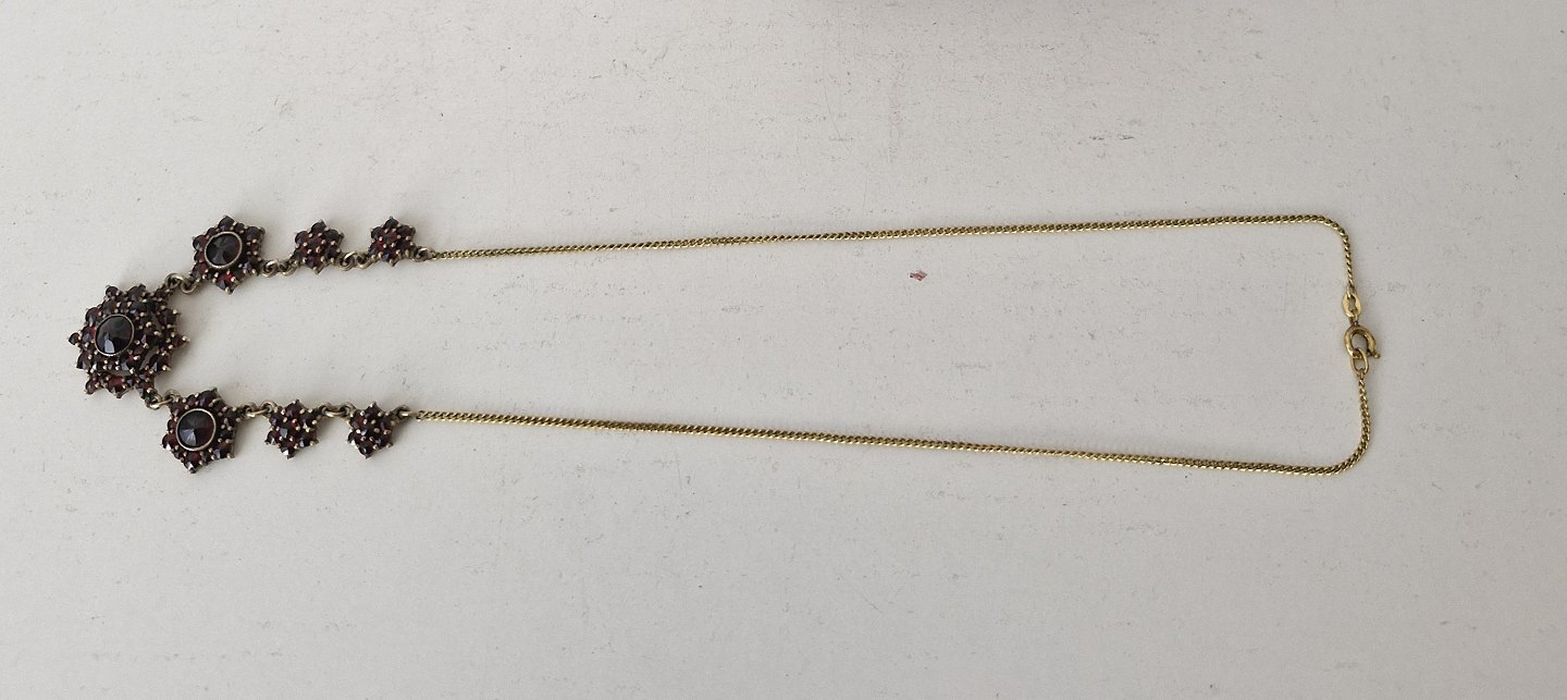 Beskrivelse: Vintage granat collier af forgyldt metal