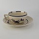 Beskrivelse: Tekop med underkop i fajance fra stellet Dragsholm fremstillet i perioden 1934-1965.
