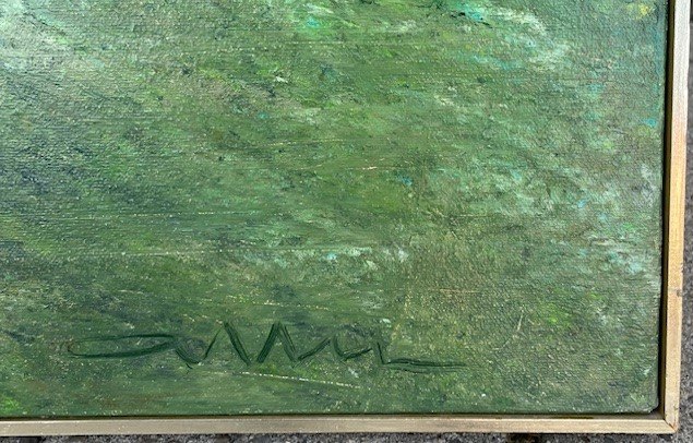 "Tågen kommer" Færøerne. Et af kunstnerens bedste oliemalerier fra Færøerne. Maleriet har været udstillet på Vejle Kunstmuseum.