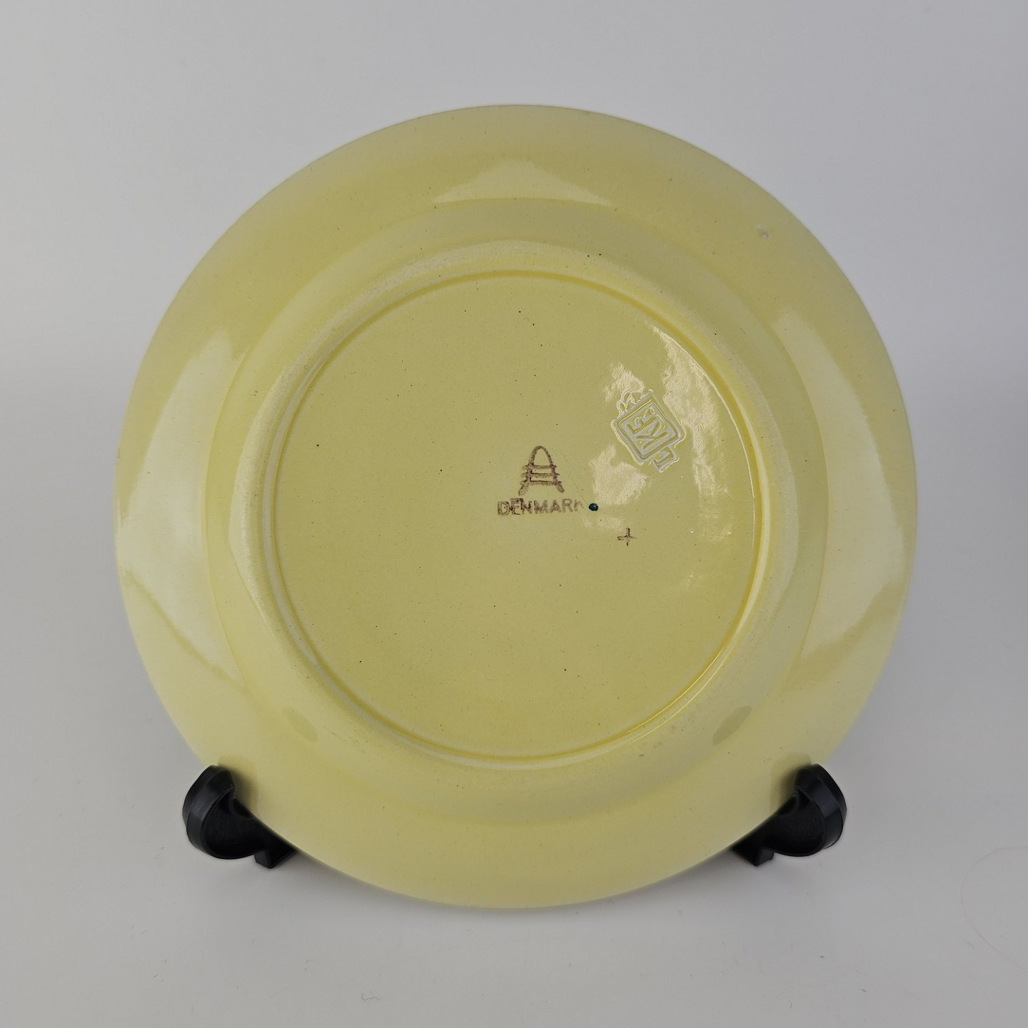 Beskrivelse: Flad kagetallerken i fajance fra stellet Gertrud fremstillet i perioden 1933-1939.