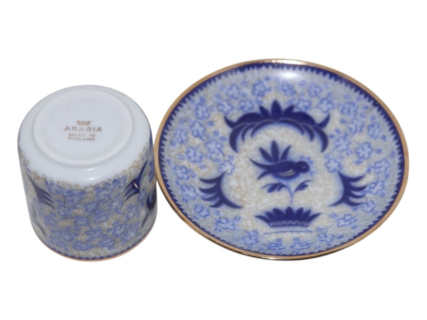 Beskrivelse: Arabia Finland She Fo, lille kaffekop med underkop.