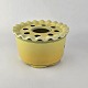 Fajancestel i stelform C med dekoration i gule nuancer med grøn stribe.