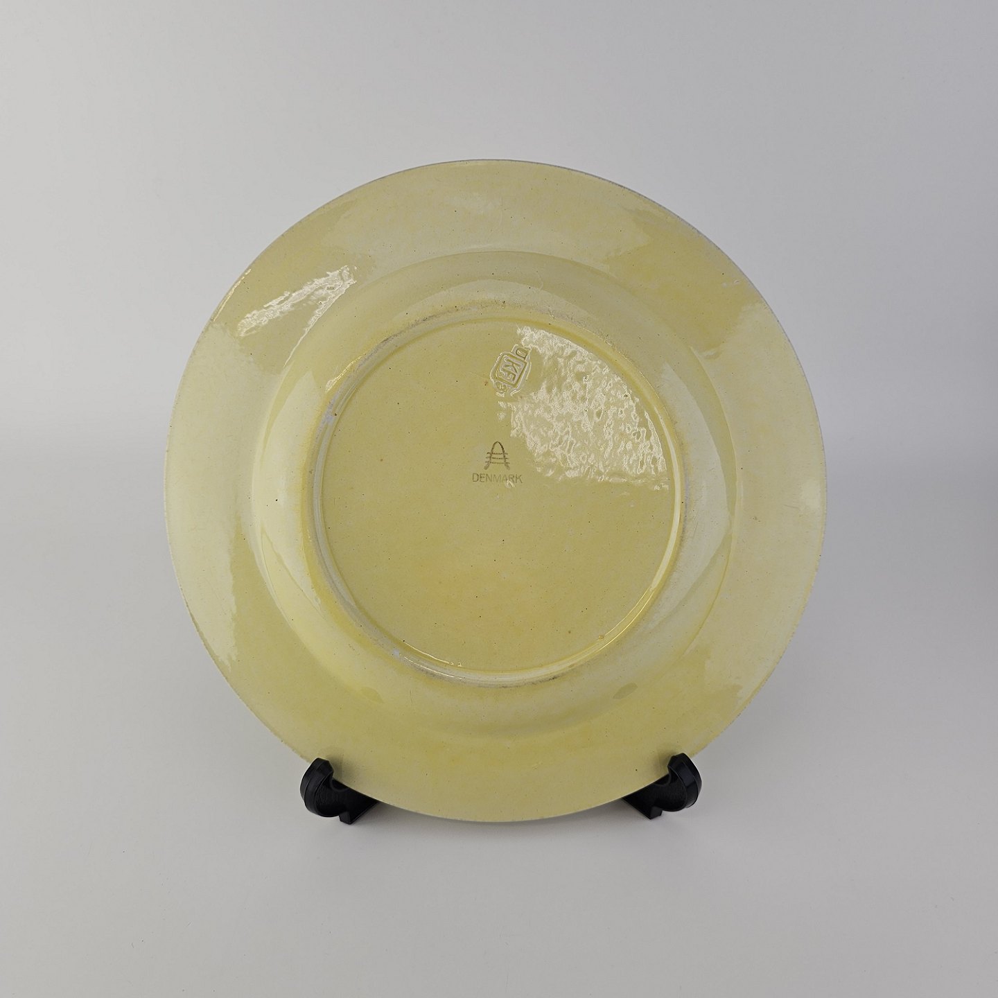 Beskrivelse: Flad tallerken i fajance fra stellet Gertrud fremstillet i perioden 1933-1939.