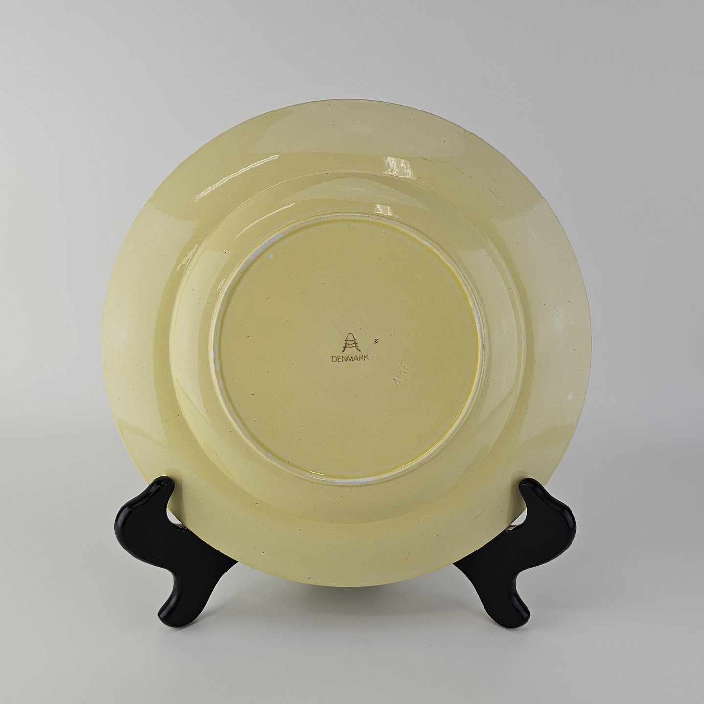 Beskrivelse: Flad tallerken i fajance fra stellet Gertrud fremstillet i perioden 1933-1939.