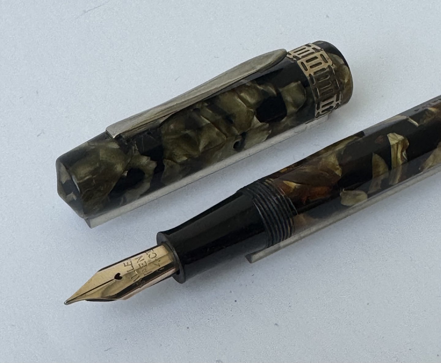 10-kantet grøn marmoreret Miller 697 fyldepen