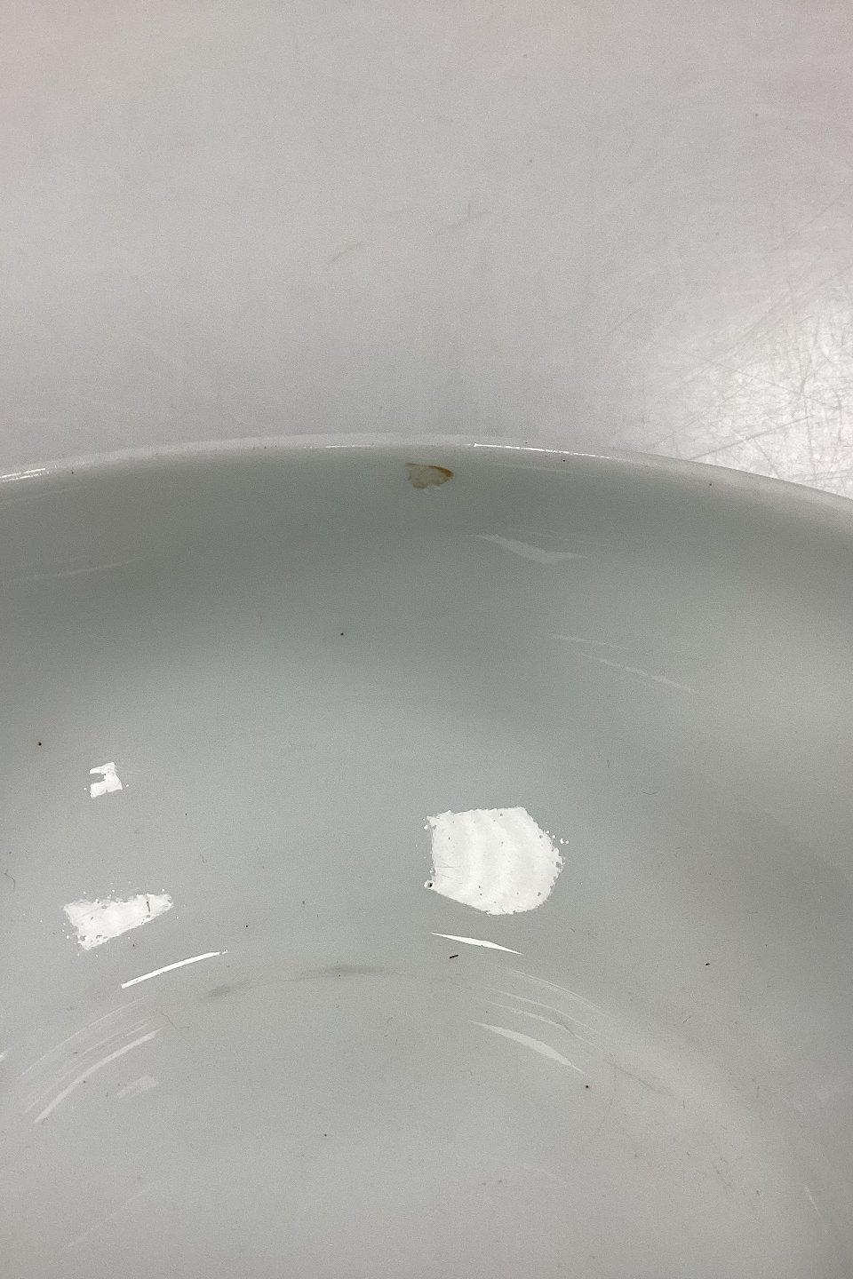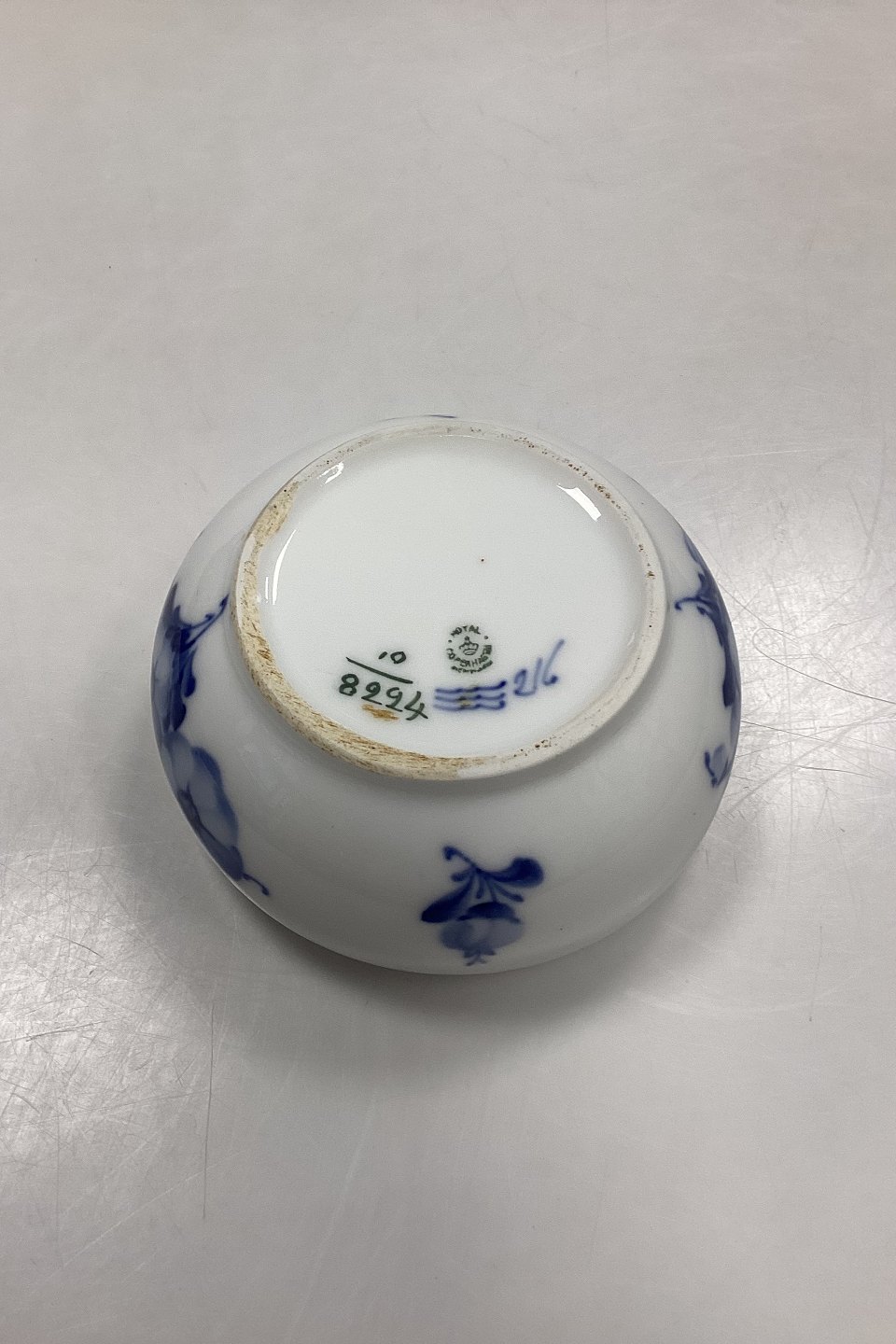 Beskrivelse: Royal Copenhagen Blå Blomst Flettet Skylleskål No. 8224. Måler 13 cm x 13,5 cm / 5,12 in. x 5,31 in. pga skævhed i kanten. 2. Sortering med små sorte brændingsnister og lille glasurfejl indvendig øverst under kanten, se foto.