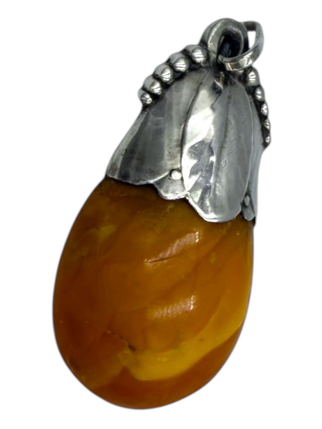 Beskrivelse: Stort rav vedhæng med sølvmontering.