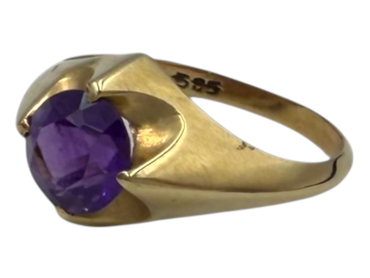 Beskrivelse: Herman Siersbøl, 14 karat guld ring med lilla ametyst.