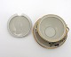 Boullionkop med låg og undertallerken. Længde 14 cm. Diameter 11,5 cm. Højde 9,5 cm. Undertallerken 14,5 cm. Sjælden. Pris: 200 kr. stk. Lager: 1