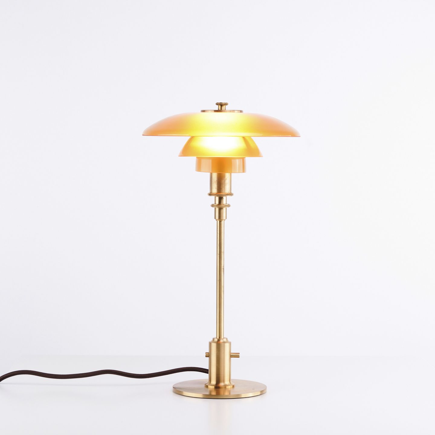 Beskrivelse: PH 2/1 bordlampe designet af Poul Henningsen og udgivet som Limited Edition i 2017 af Louis Poulsen. Lampen er udført i messing med ravfarvede glasskærme, som giver et varmt og stemningsfuldt lys. Den begrænsede produktion og korte salgsperiode gør modellen særligt eftertragtet.