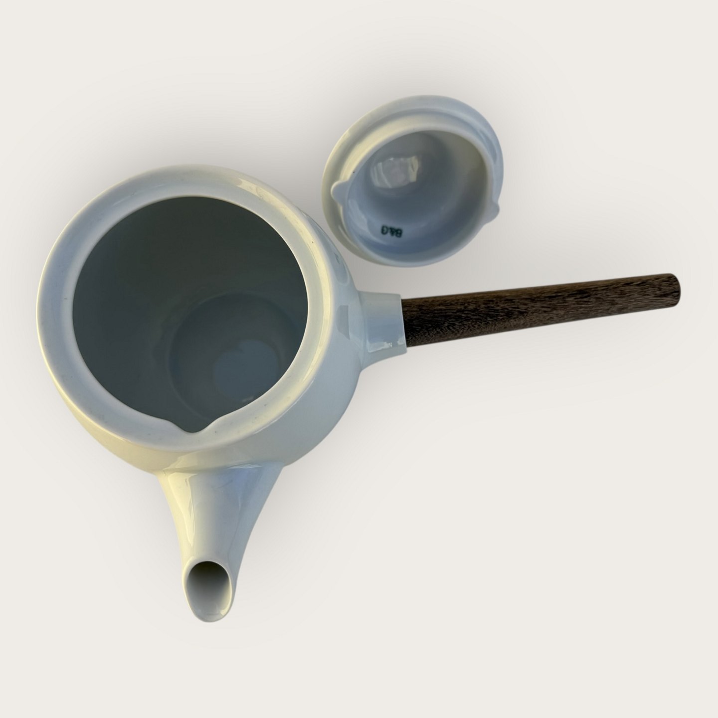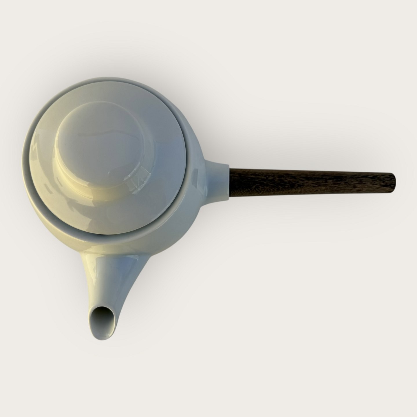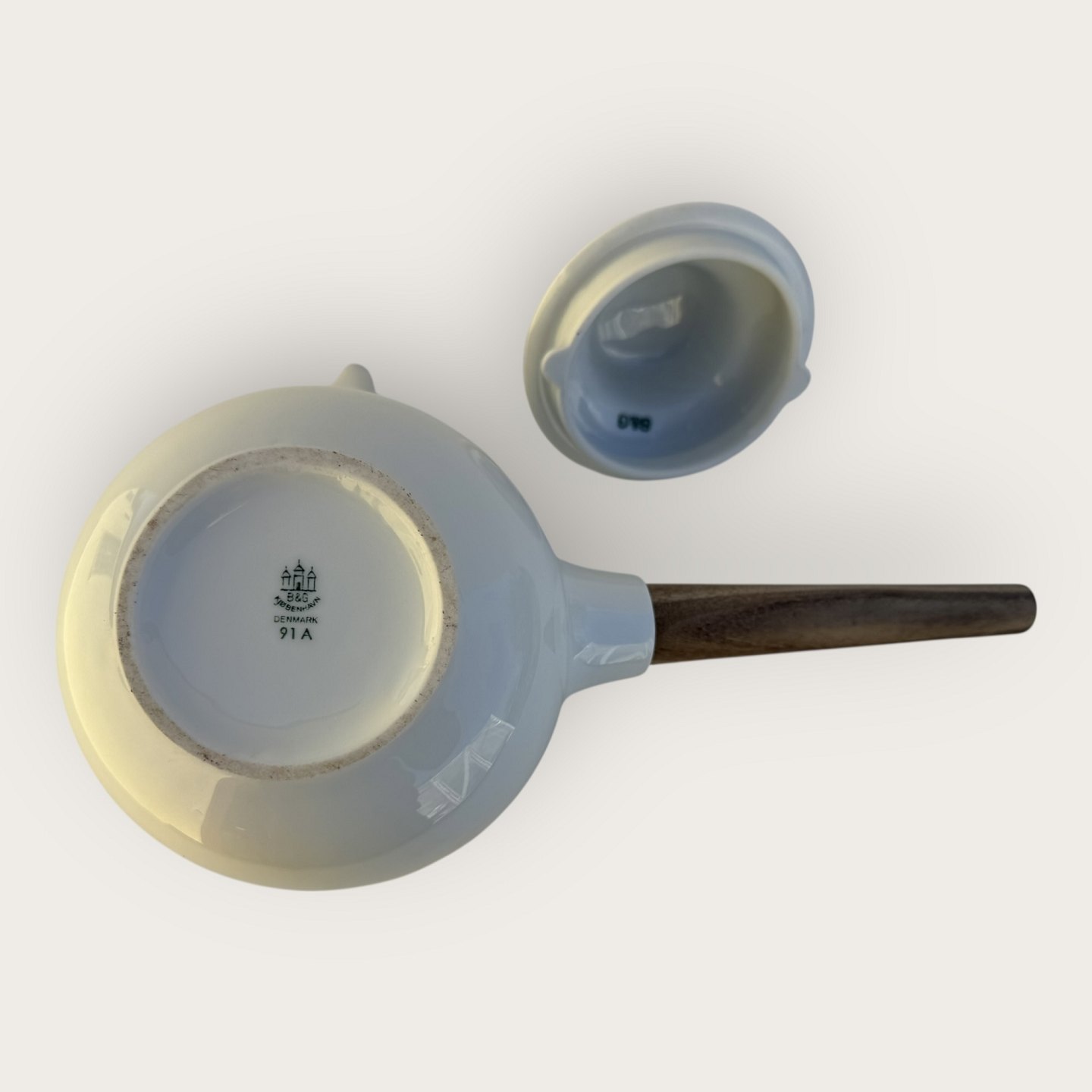 Beskrivelse: Bing & Grøndahl, Hvid Koppel, Tekande med håndtag i teak fra 1960'erne, Mål ca. 18x28cm, Design Henning Koppel *fin stand*