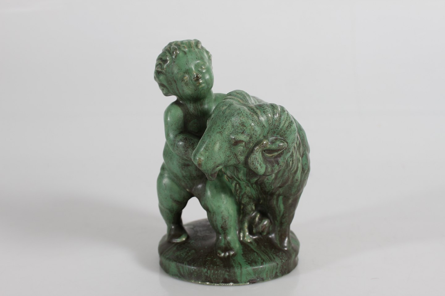 Dreng siddende med vædder