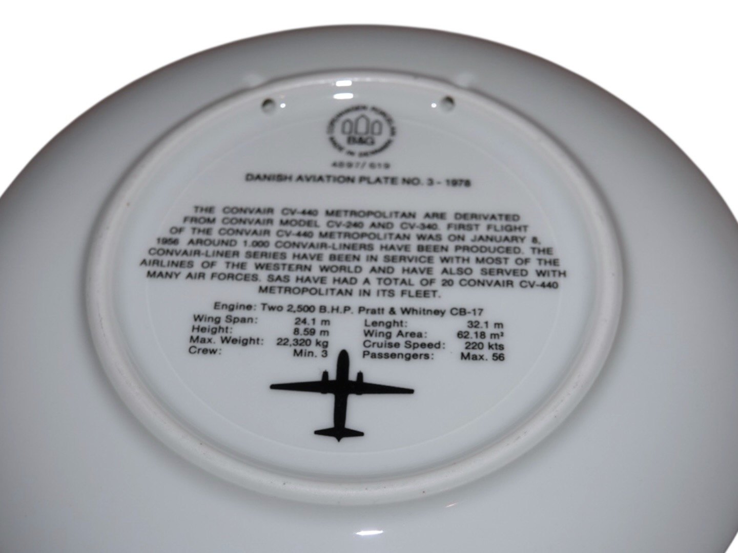 Beskrivelse: Bing & Grøndahl flyplatte Nummer 3, Metropolitan SAS.