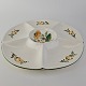 Beskrivelse: Rundt fad i fajance fra stellet Maj fremstillet i perioden 1941-1966.