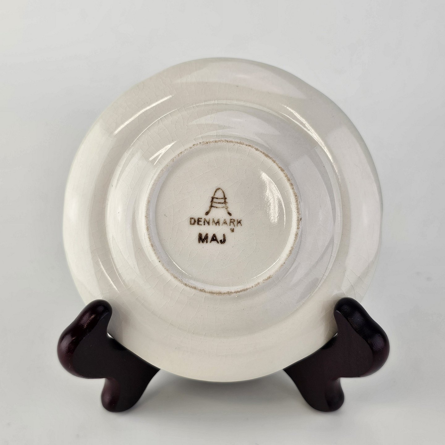 Beskrivelse: Rund asiet i fajance fra stellet Maj fremstillet i perioden 1941-1966.