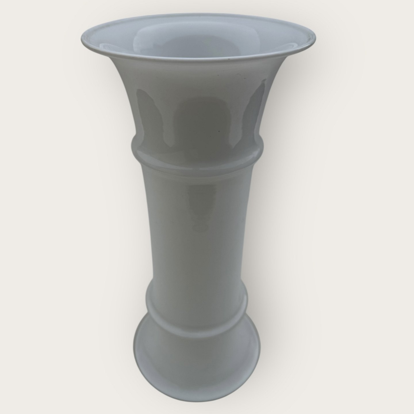 Beskrivelse: Holmegaard, Stor MB vase, Opal hvid, 30,5cm høj, 14cm i diameter, Design Michael bang *Fin stand*