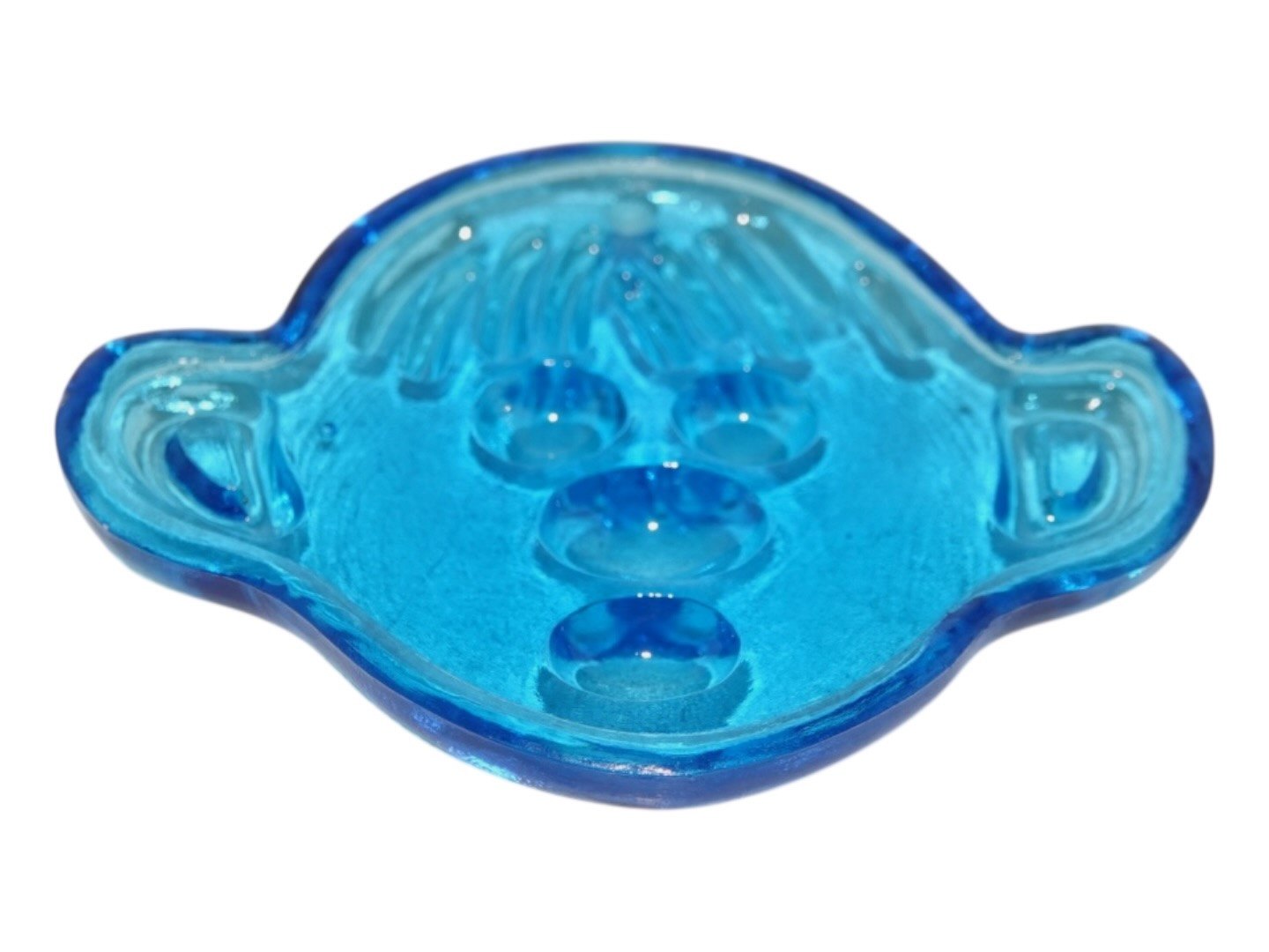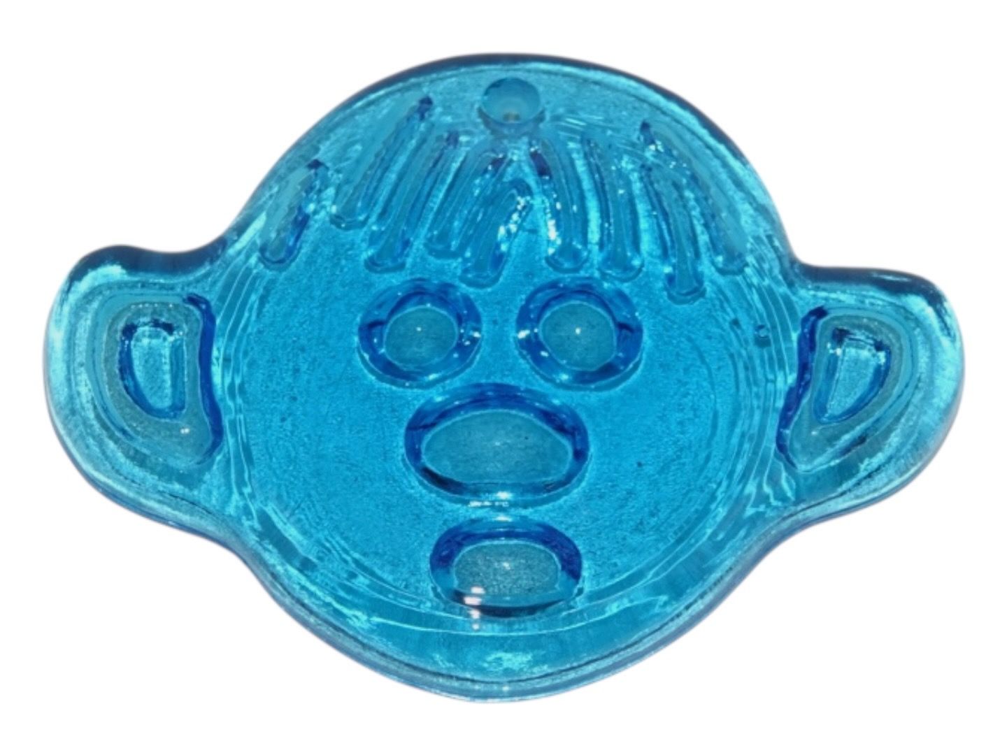 Beskrivelse: Glasværk fra Sverige, lyseblå solfanger i form af drengeansigt fra 1970'erne eller 1980'erne.
