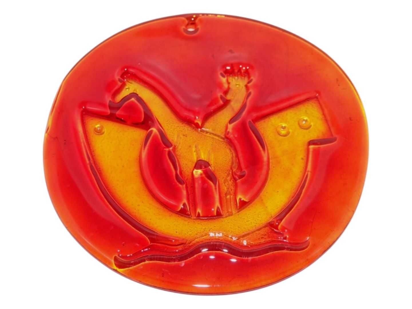 Beskrivelse: Holmegaard, orangerød solfanger fra 1970'erne.