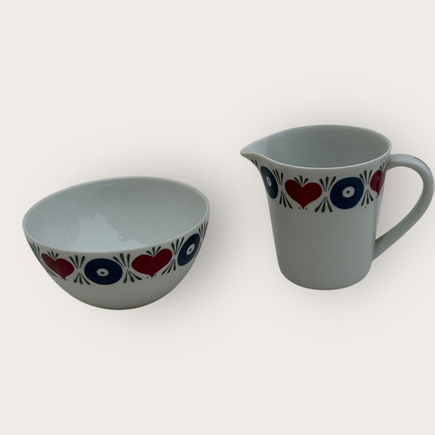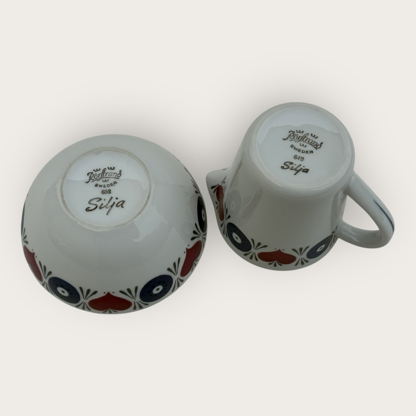 Beskrivelse: Rörstrand, Silja, Sukker og fløde sæt, Design Marianne Westman, kande højde 7,5cm, sukkerskål diameter 9,8cm *Pæn stand*