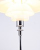 Beskrivelse: Klassisk PH 2/1 bordlampe designet af Poul Henningsen og fremstillet af Louis Poulsen. Lampen er udført i krom med skærme i hvidt opalglas, hvilket giver et let og elegant udtryk. Modellen består af en overskærm på ca. 20 cm kombineret med mellem- og underskærme fra PH 1/1, hvilket giver en særlig proportionering i designet.