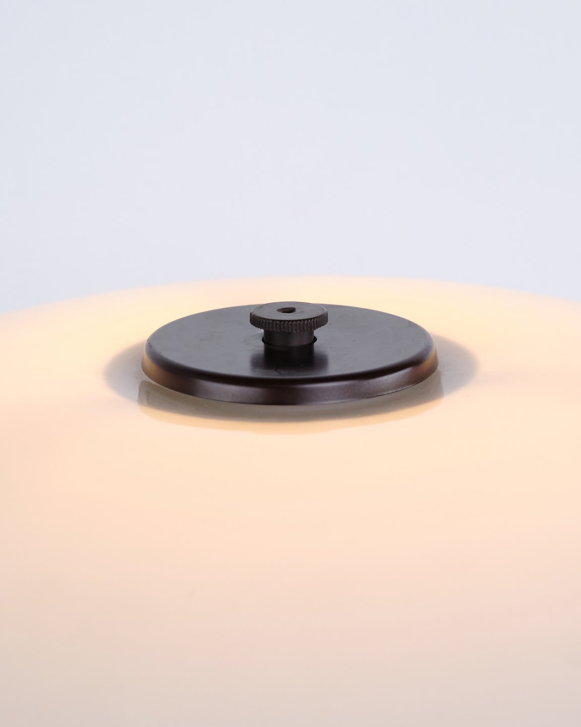 Beskrivelse: PH 4/3 bordlampe designet af Poul Henningsen og fremstillet af Louis Poulsen i 1930’erne. Lampen er udført i bruneret messing med skærme i hvidt opalglas, hvilket giver et varmt og afbalanceret lys. Det ikoniske flerskærmssystem er udviklet til at sikre blændfri belysning og optimal lysfordeling.