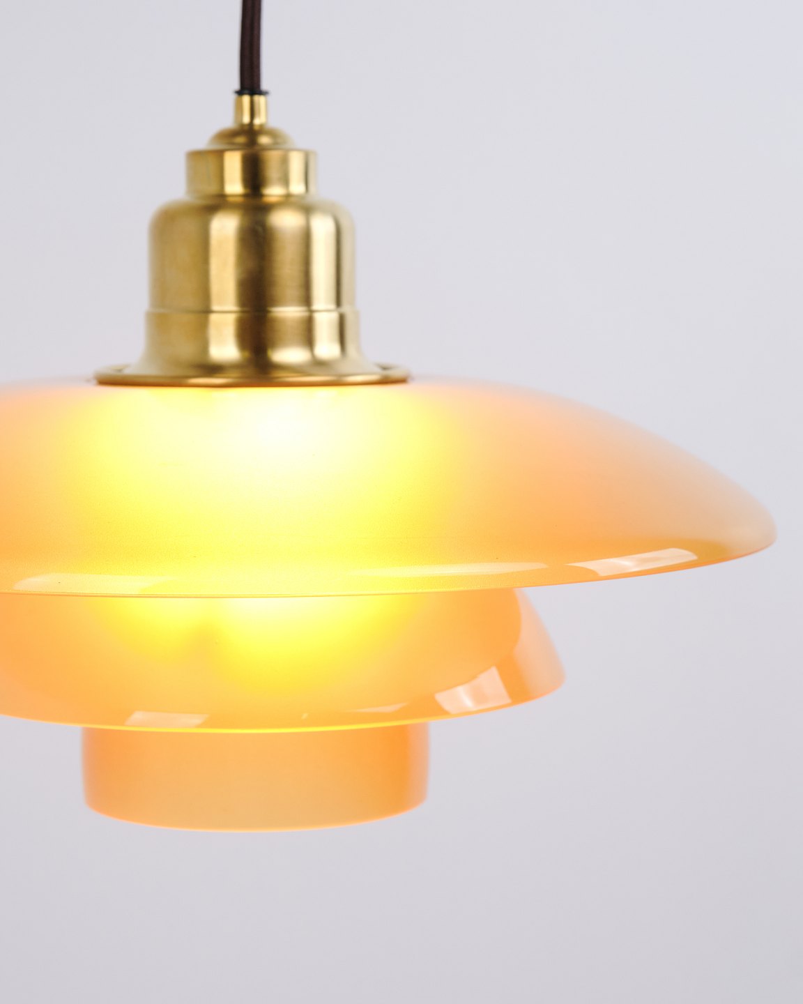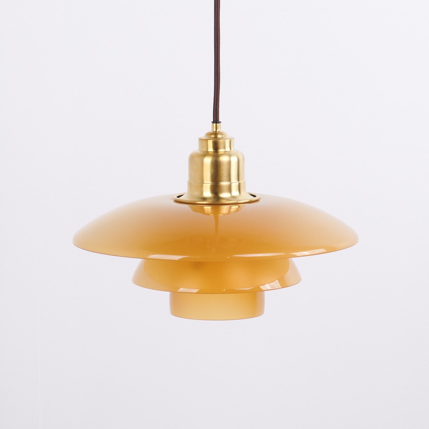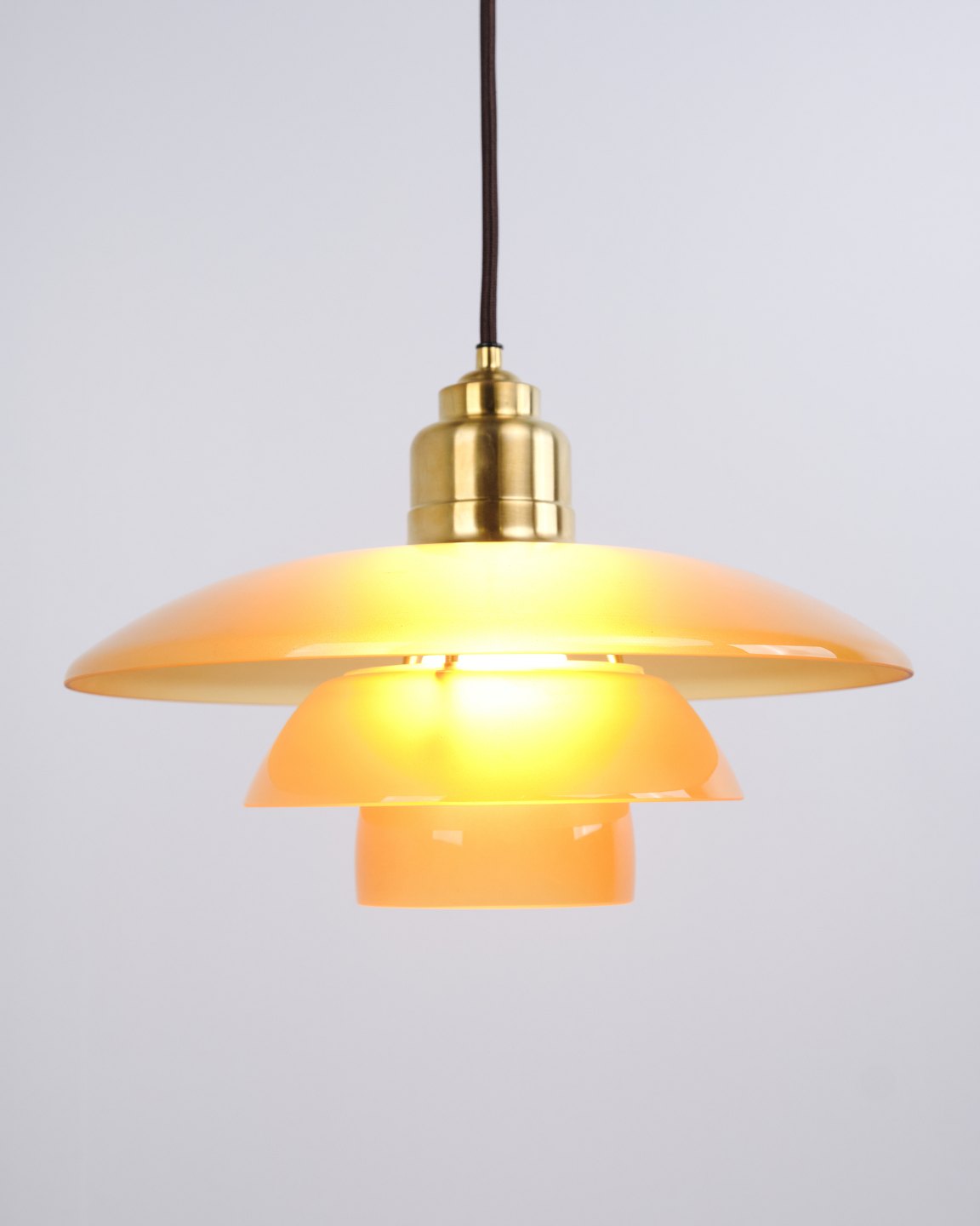 Beskrivelse: PH 3½-3 pendel designet af Poul Henningsen og udgivet som Limited Edition i 2017 af Louis Poulsen. Lampen er udført med ravfarvede glasskærme, som giver et varmt og stemningsfuldt lys. Modellen blev kun produceret og solgt i en kort periode, hvilket gør den særligt eftertragtet.