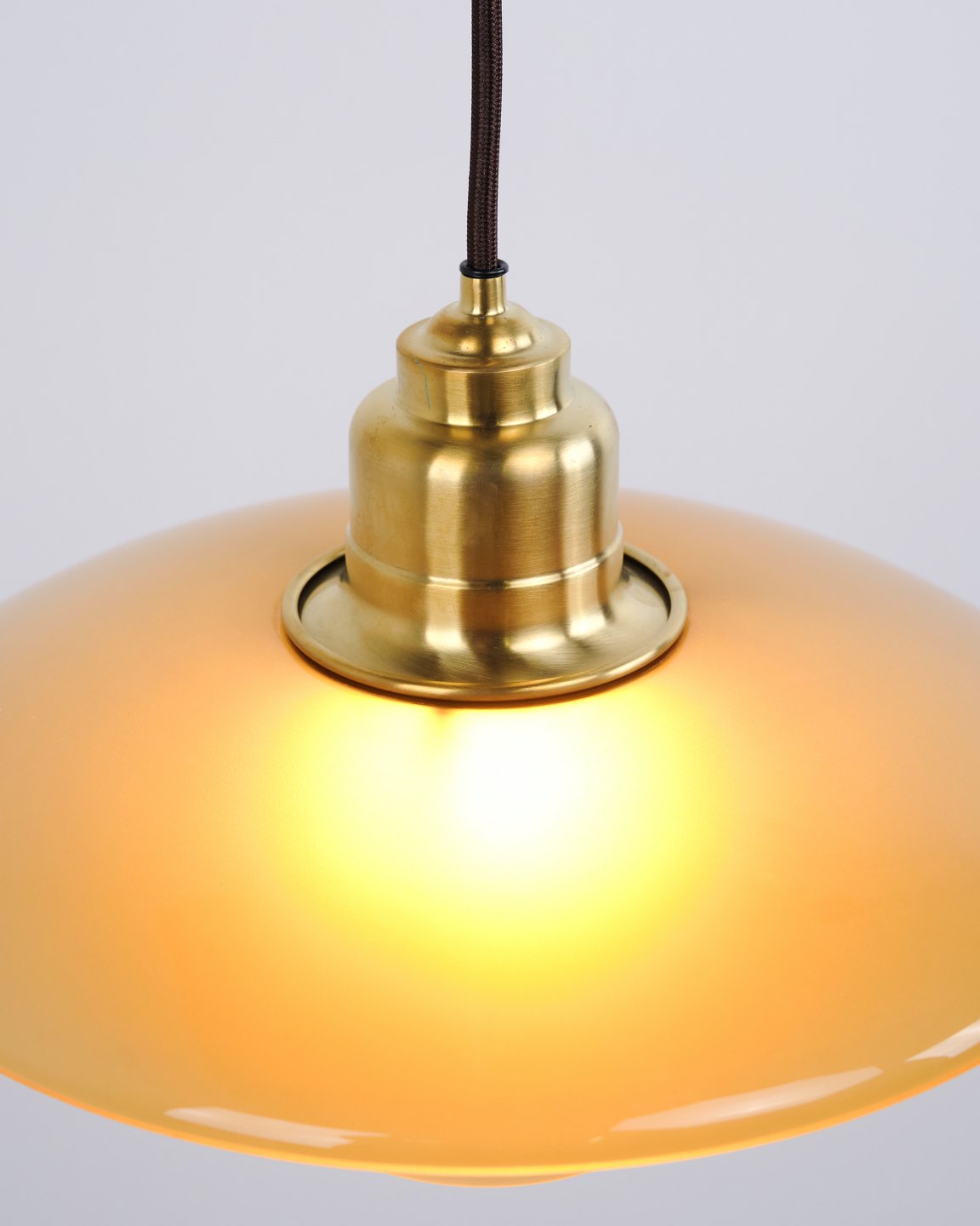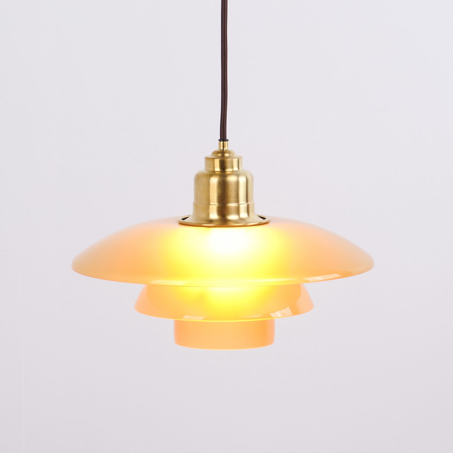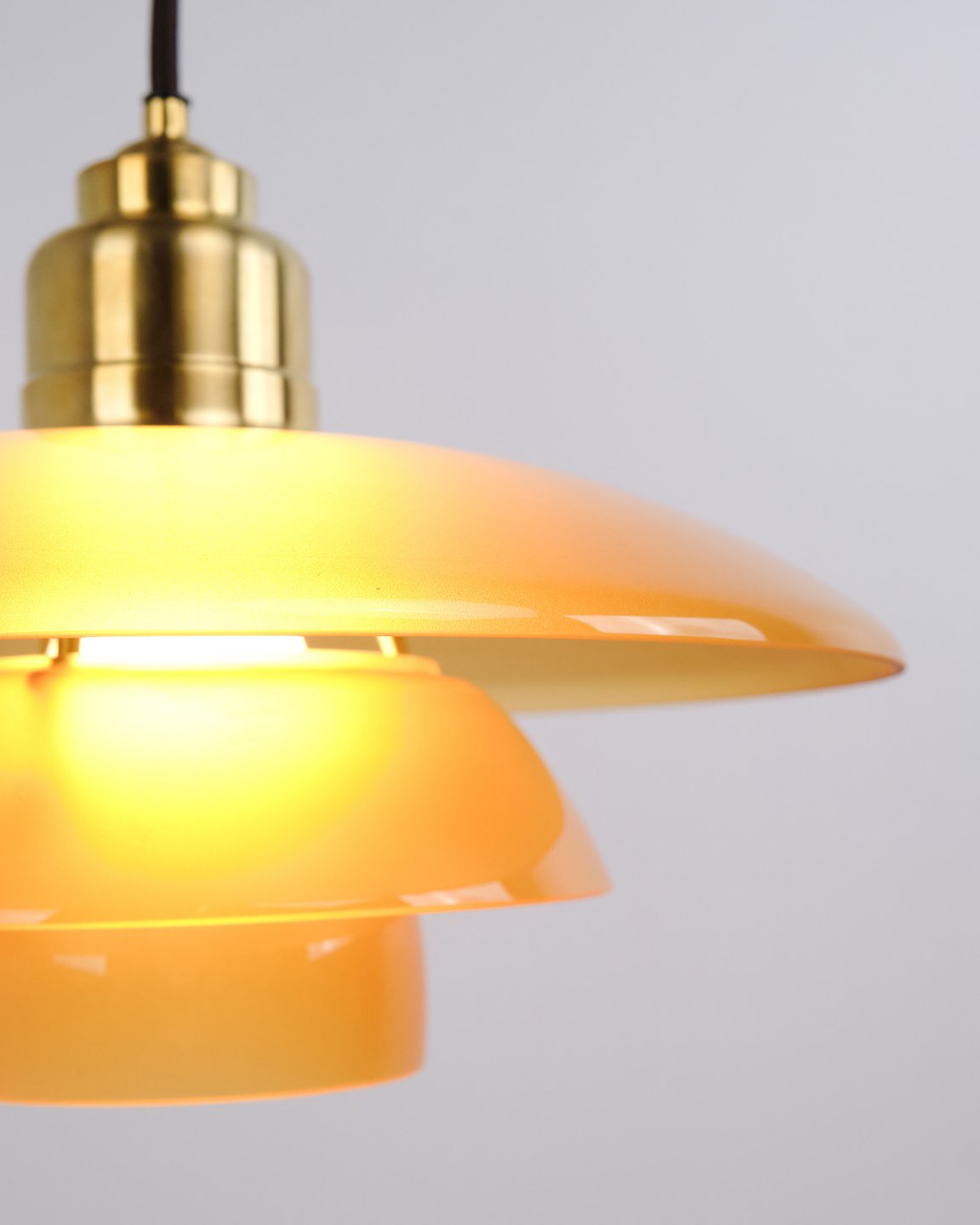 Beskrivelse: PH 3½-3 pendel designet af Poul Henningsen og udgivet som Limited Edition i 2017 af Louis Poulsen. Lampen er udført med ravfarvede glasskærme, som giver et varmt og stemningsfuldt lys. Modellen blev kun produceret og solgt i en kort periode, hvilket gør den særligt eftertragtet.