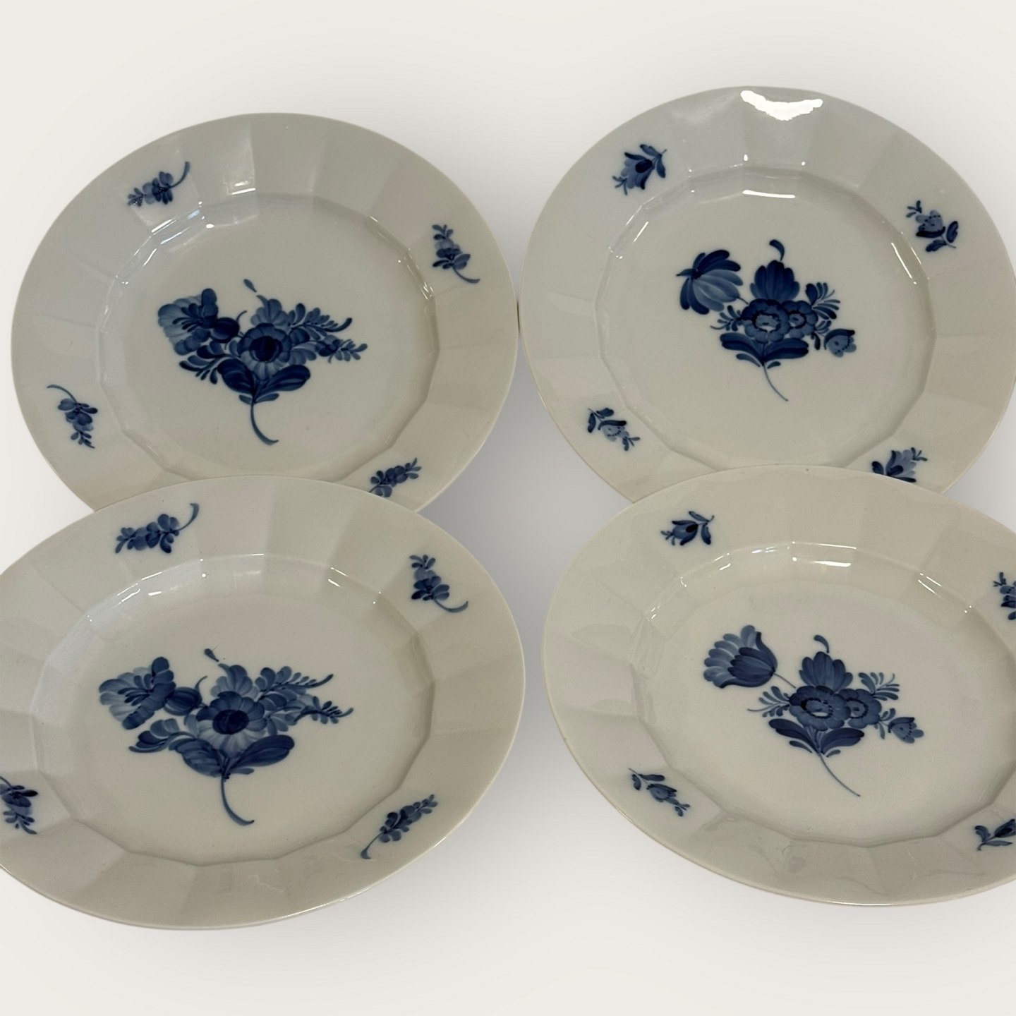 Beskrivelse: Royal Copenhagen, Kantet blå blomst, Middagstallerken #10/ 8549, 25,5cm i diameter, 3.sortering, Design Arnold Krog *Pæn stand*