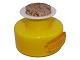 Beskrivelse: Holmegaard Palet gul krydderikrukke med teksten "Peber".