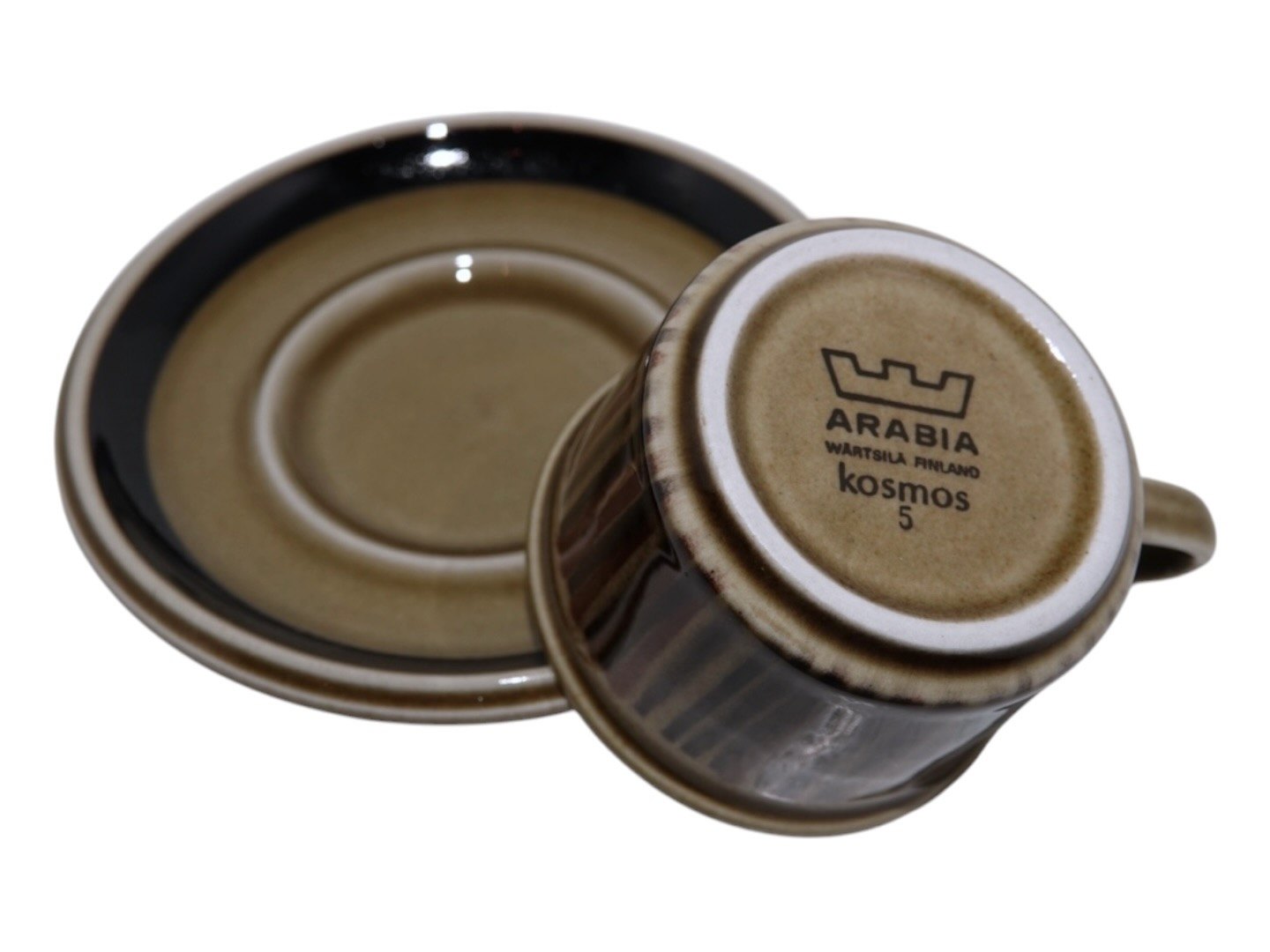 Beskrivelse: Arabia Finland Kosmos, lille kaffekop med underkop.