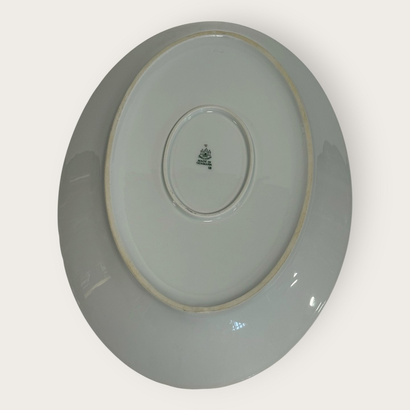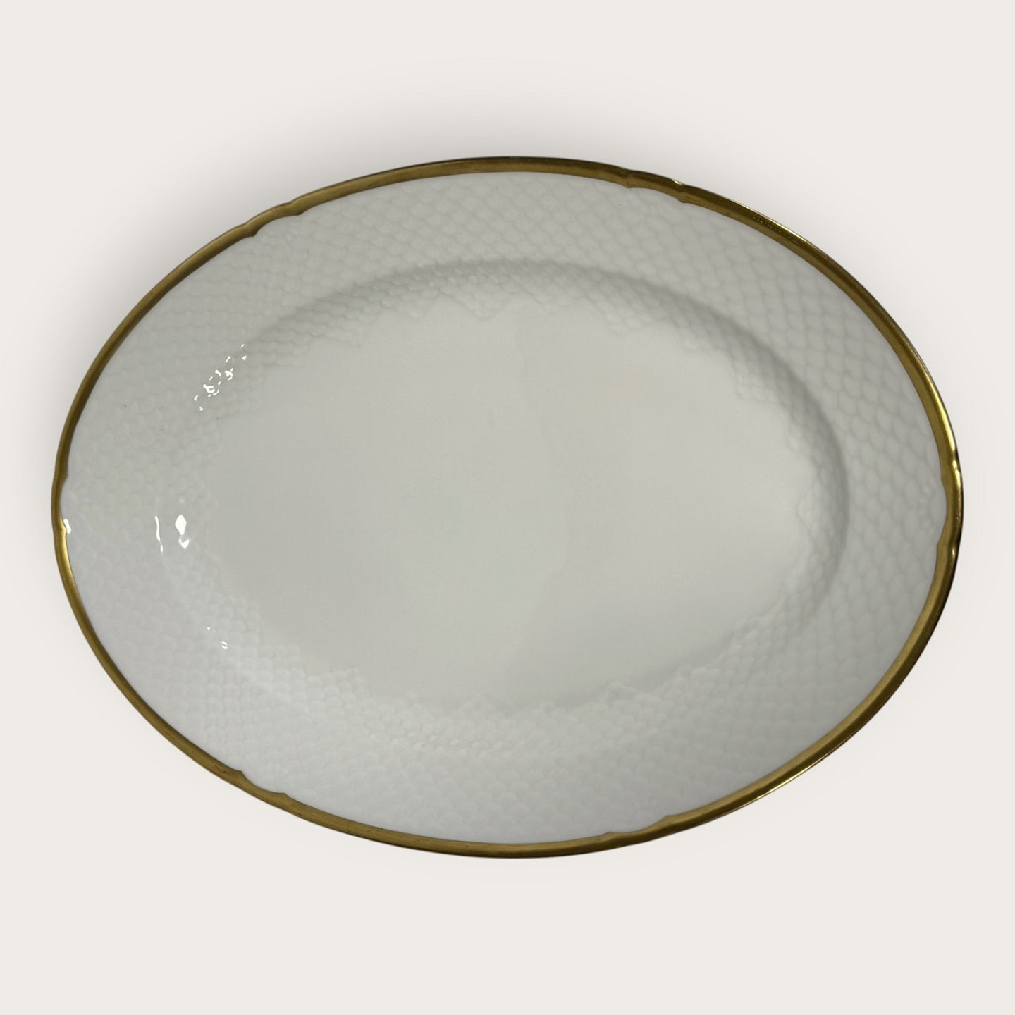 Beskrivelse: Bing & Grøndahl, Aakjær, Hvid porcelæn med guldkant, Stort serverings fad # 15, 41x28,5cm, 1.sortering *Pæn stand*