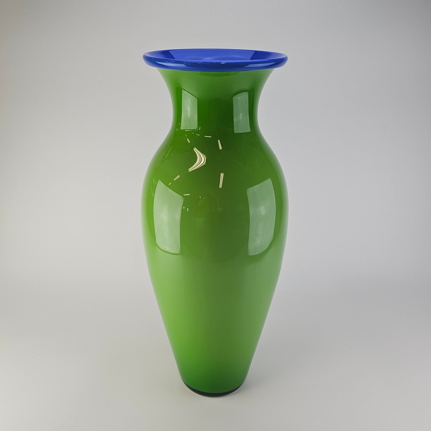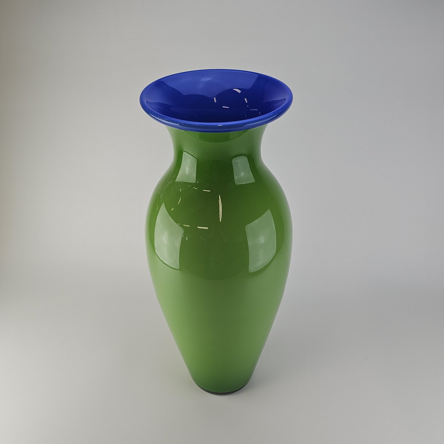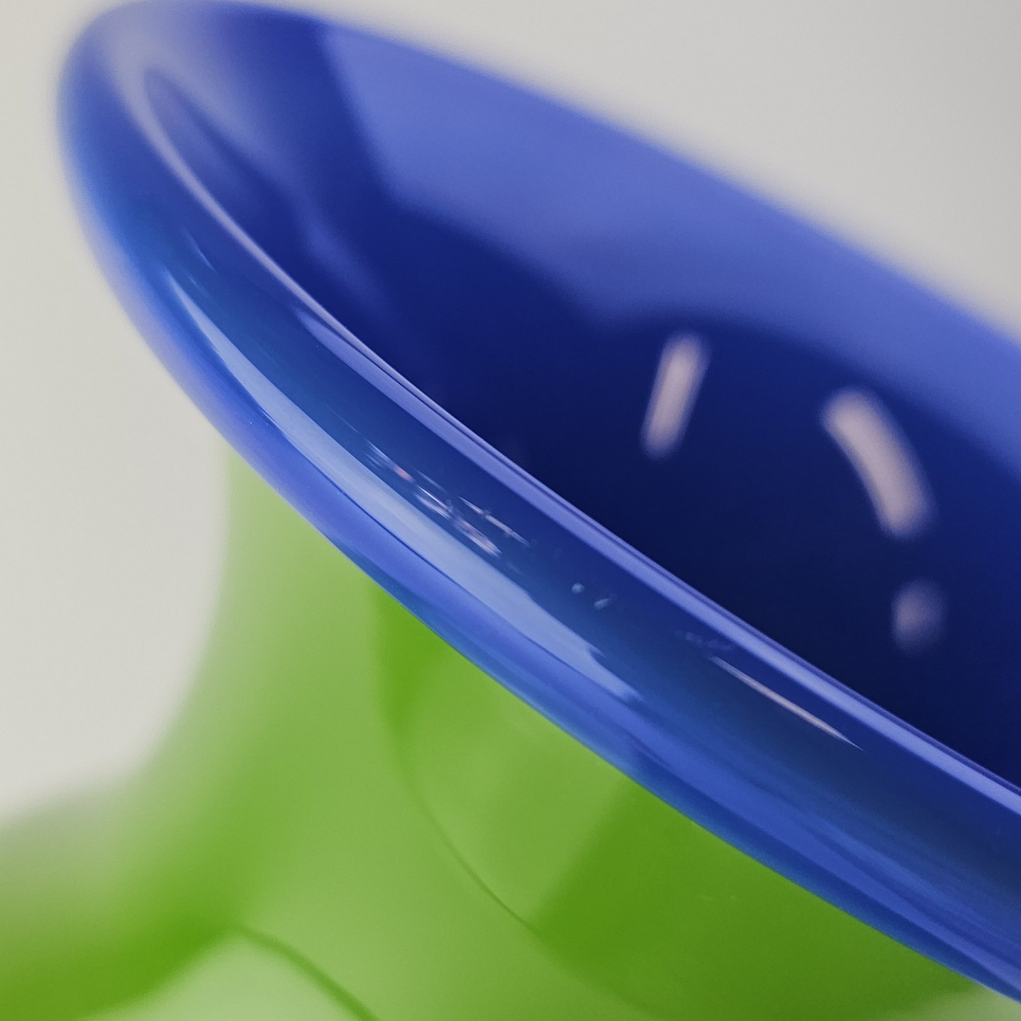 Beskrivelse: Isis vase i glas med grøn yderside og blå inderside