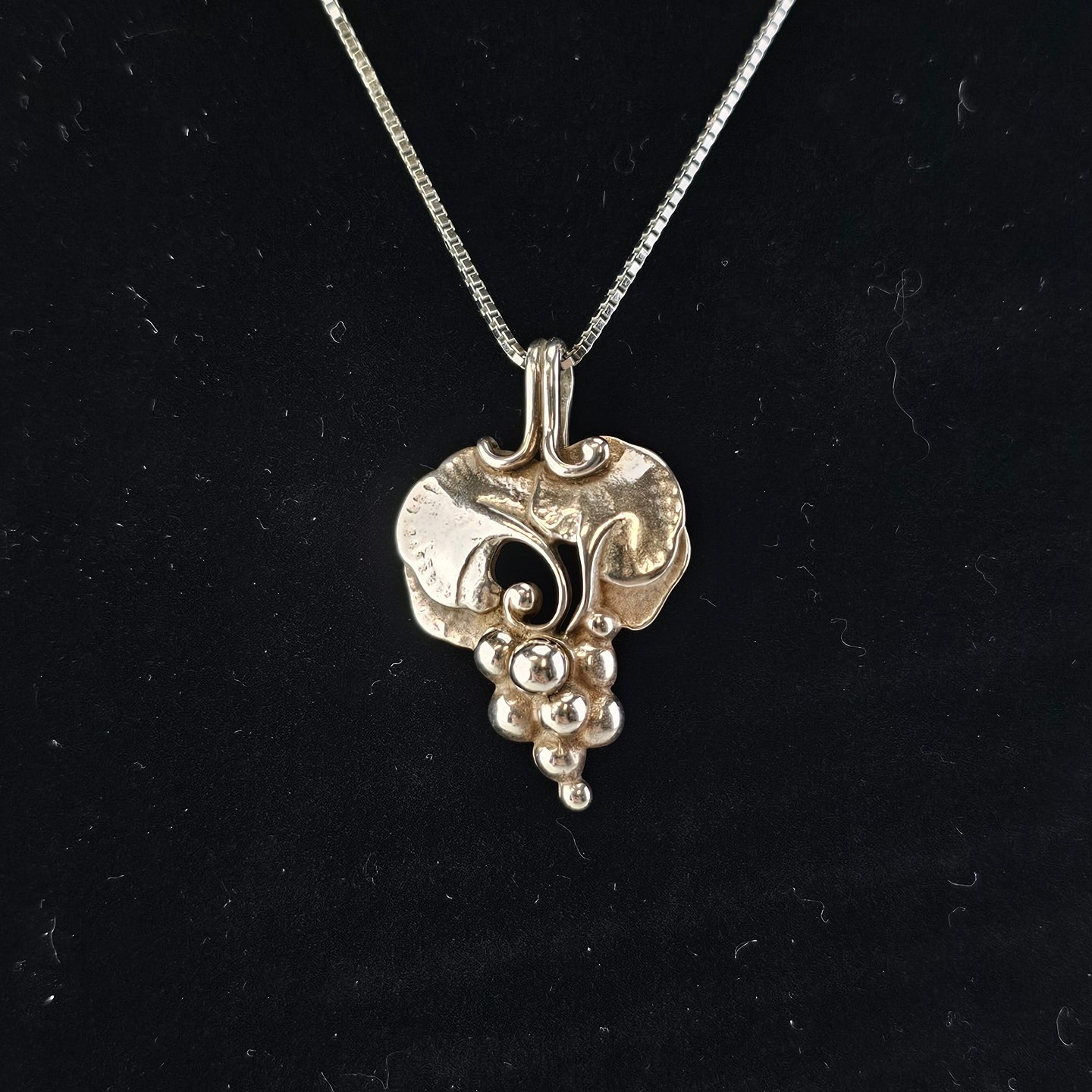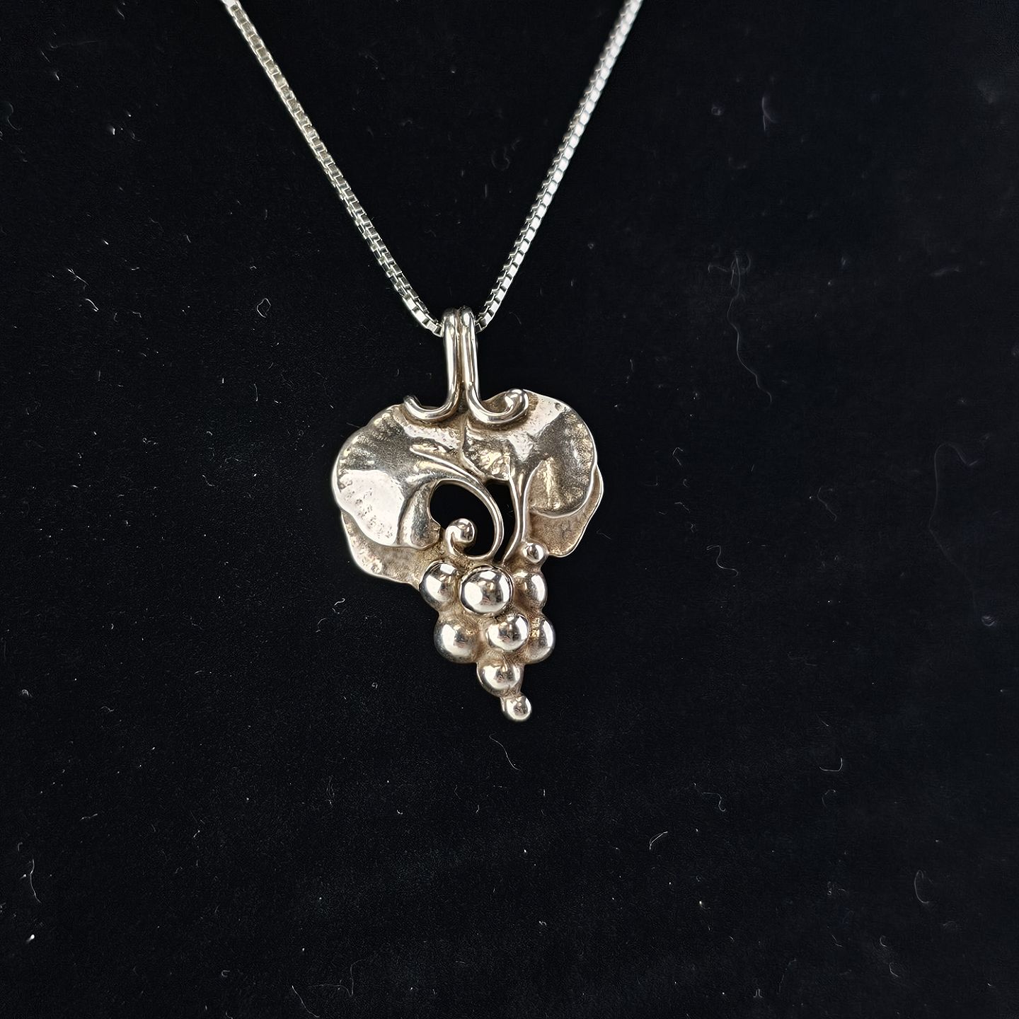 Beskrivelse: Vedhæng i sterling sølv med motiv af en klase druer