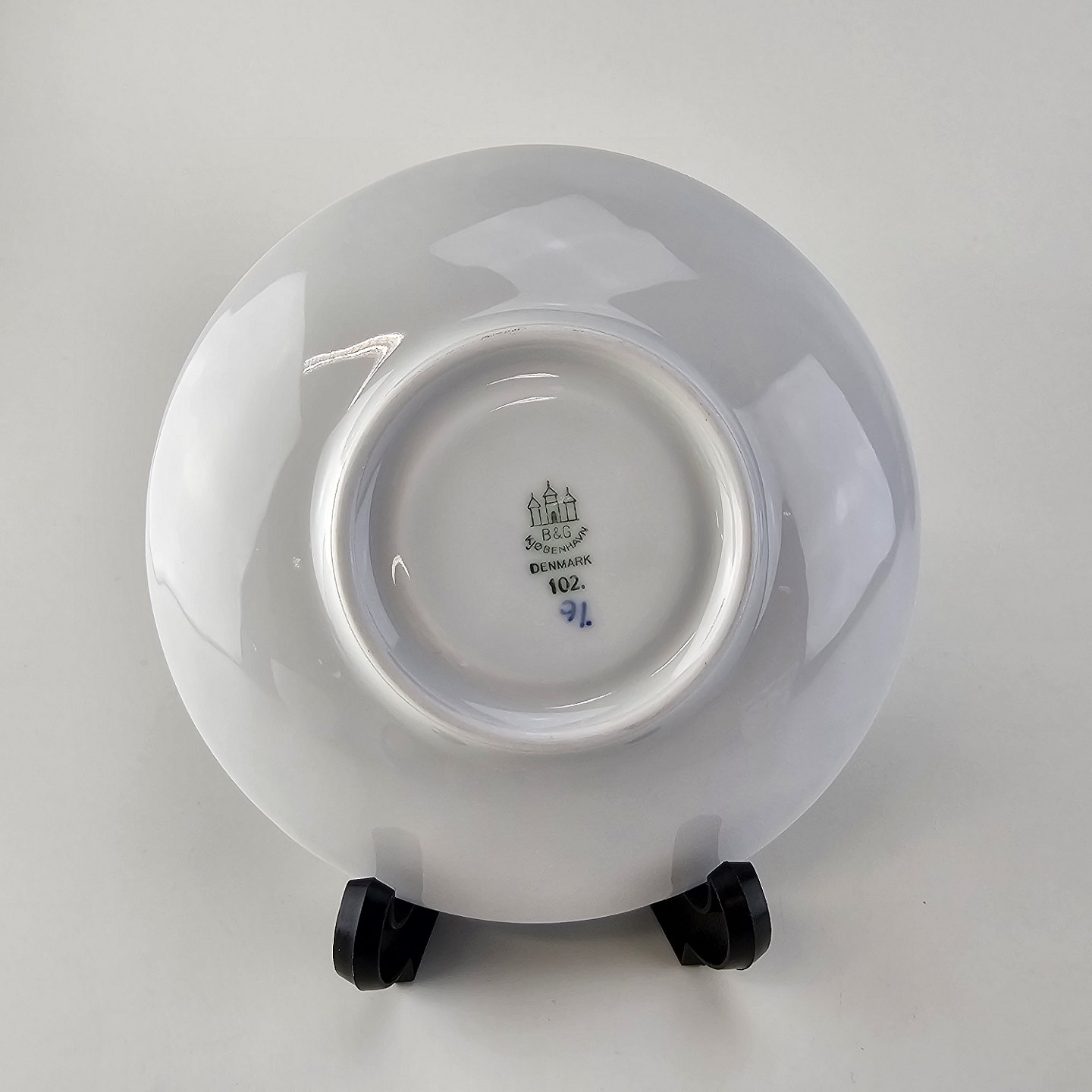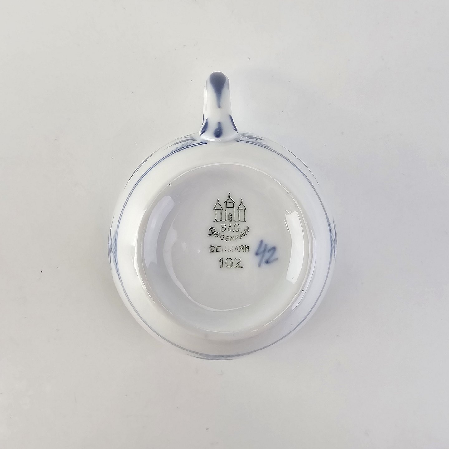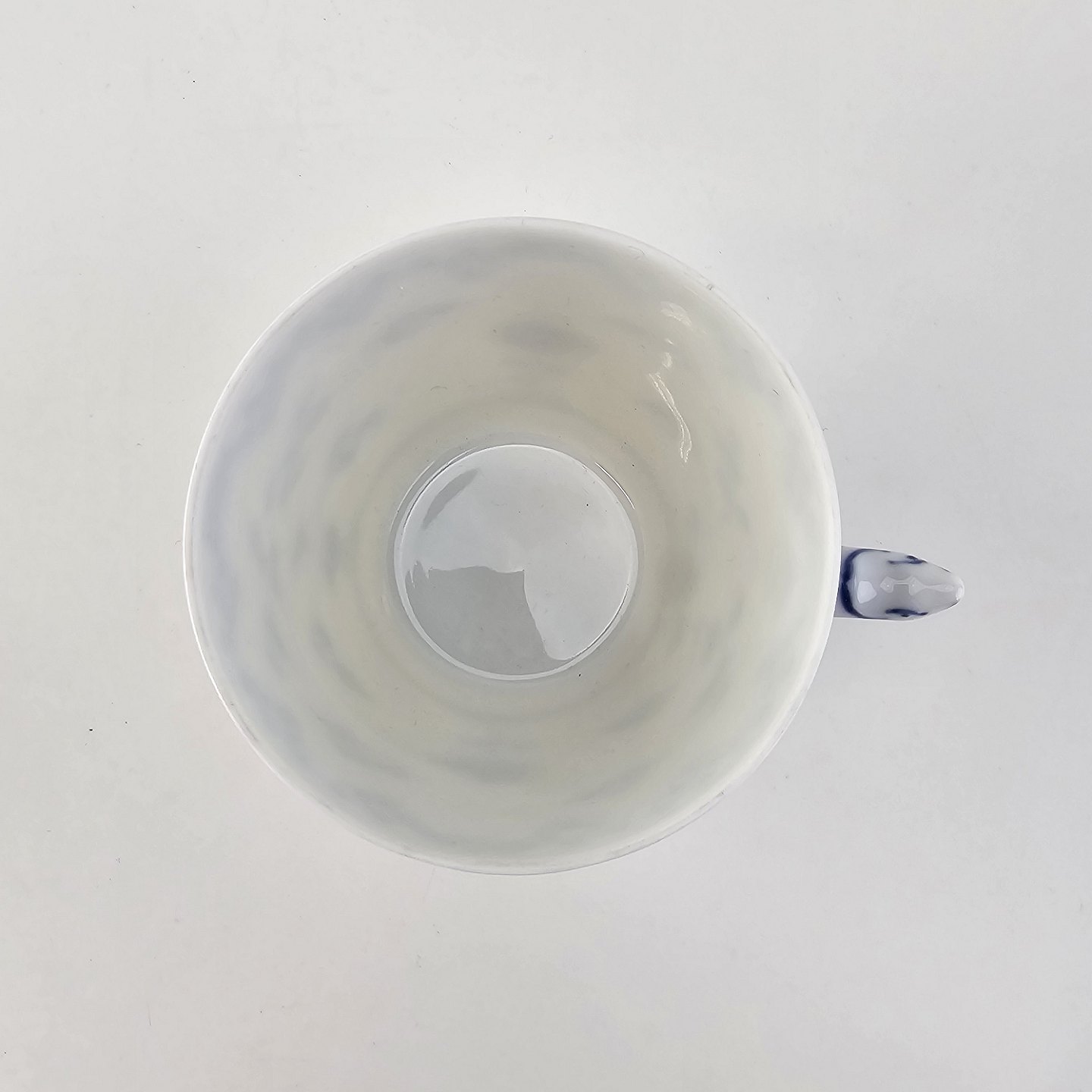 Beskrivelse: Kaffekop med underkop i porcelæn fra stellet Dickens Sommerfugl, kan indeholde 1,25 dl. Nr. 102
