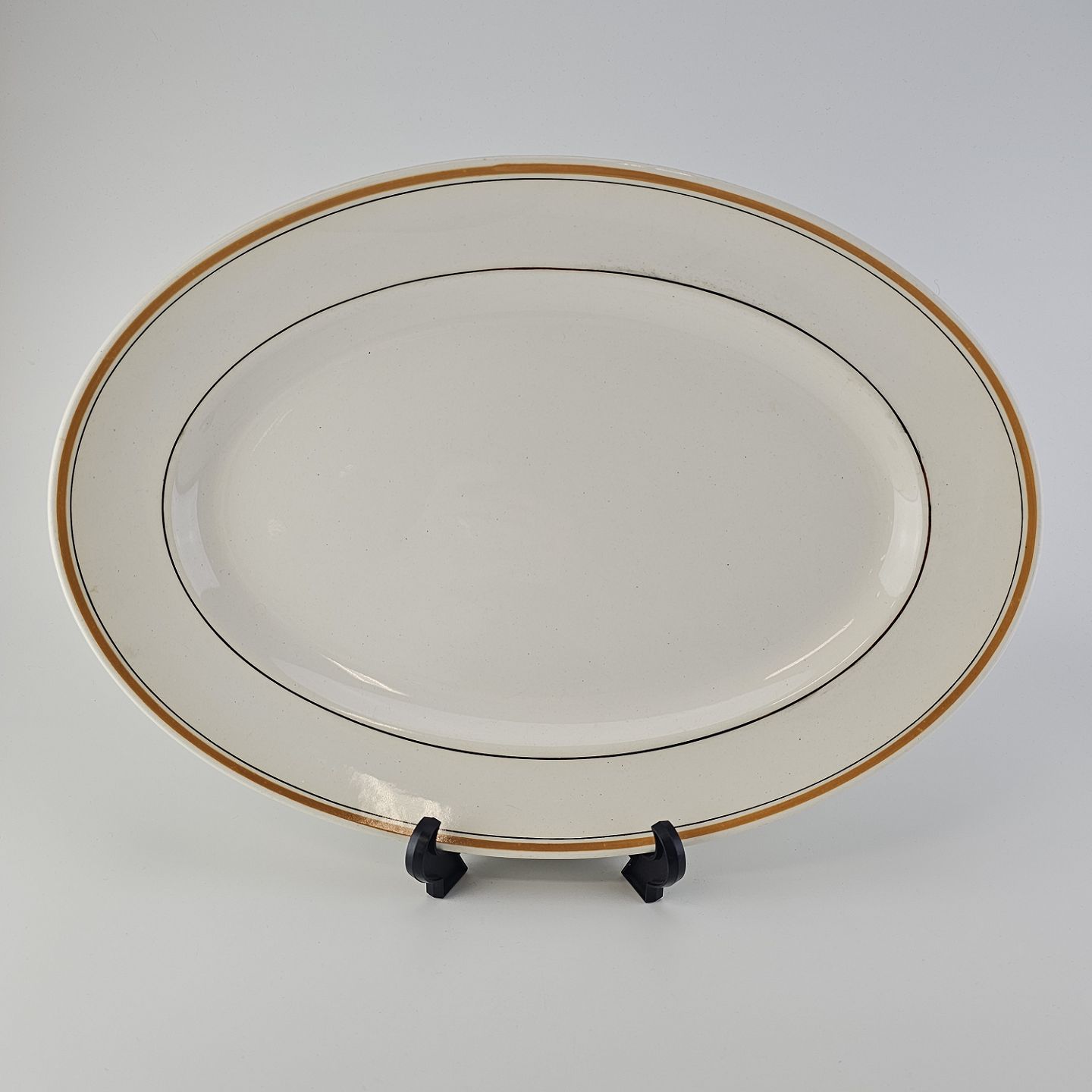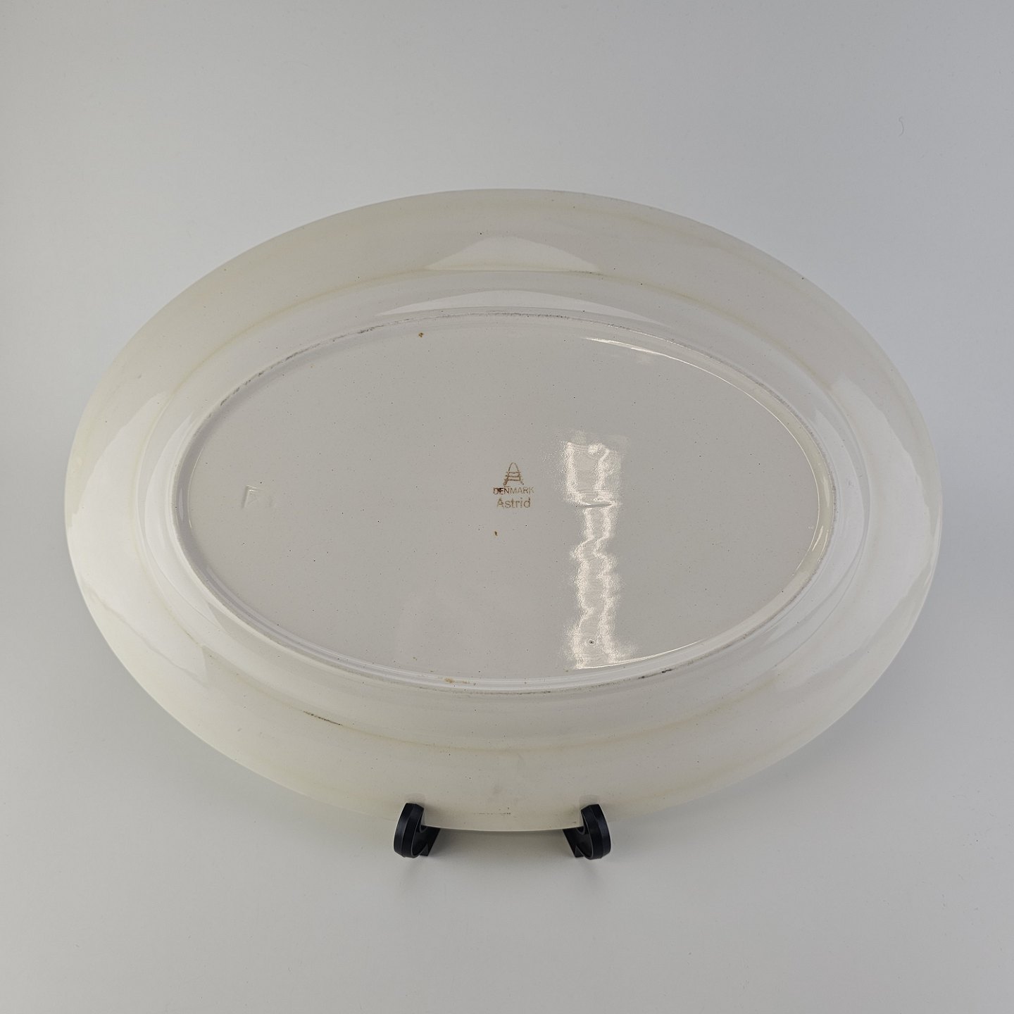 Beskrivelse: Ovalt fad i fajance fra stellet Astrid fremstillet i perioden 1937-1958
