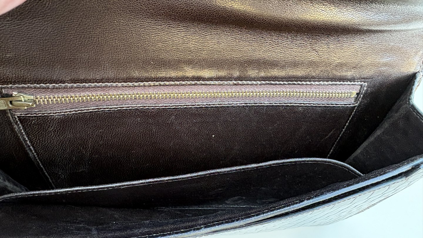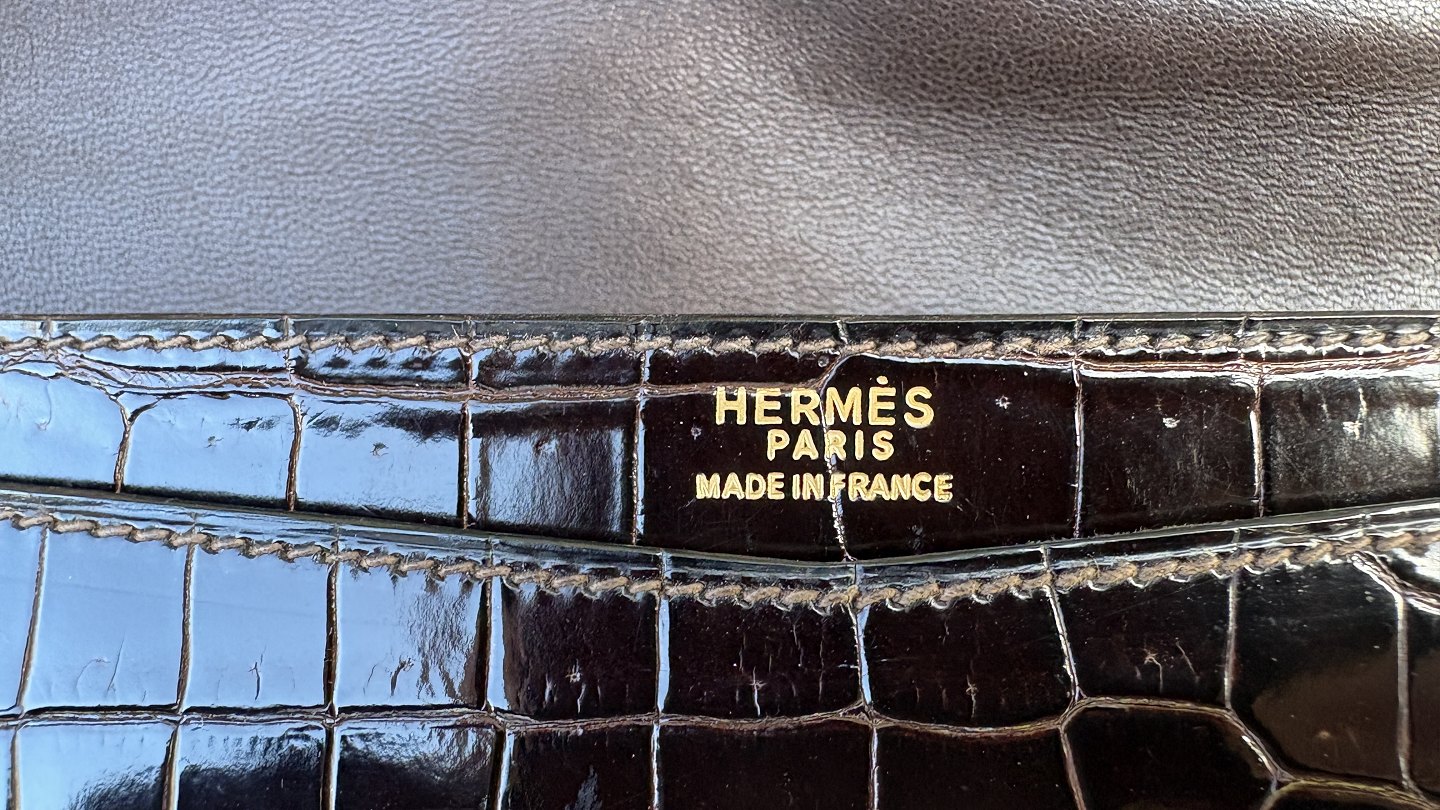 Beskrivelse: Hermès Clutch taske "Lydie" af krokodille, farve "Marron".