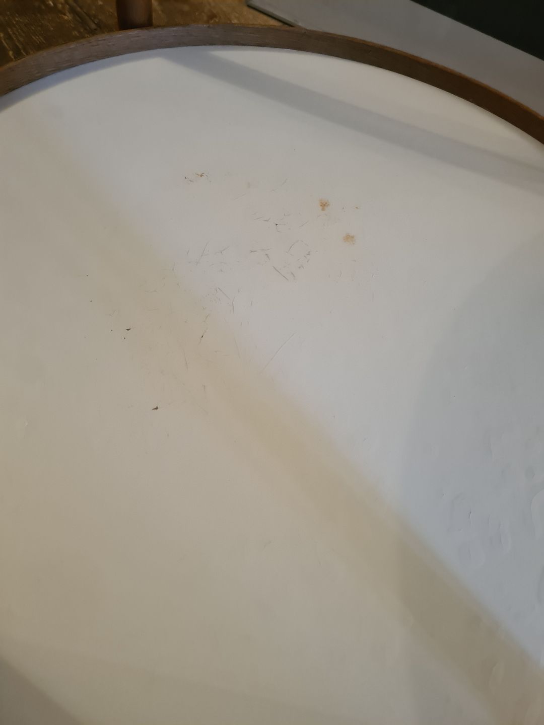 Beskrivelse: Bakkebord designet af Hans Bølling. Her i eg og formica. Fremstår pænt og funktionsdygtigt med enkelte brugsspor på den hvide formica.(Billeder)