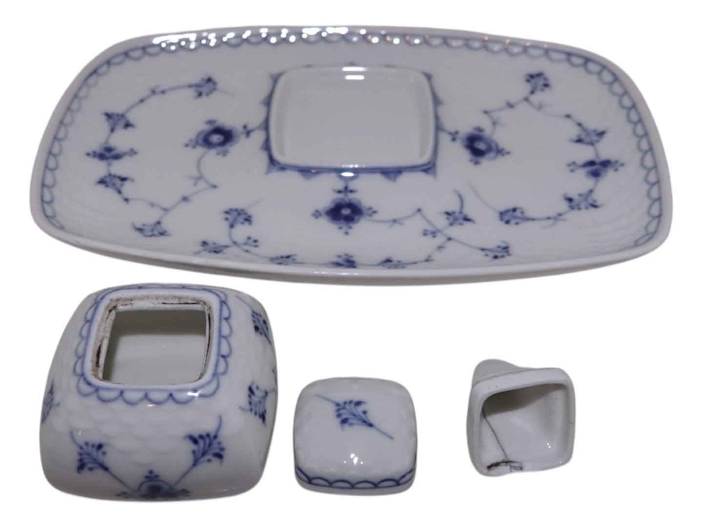 Beskrivelse: Bing & Grøndahl Blåmalet (Musselmalet), sjældent blækhus med tragt.