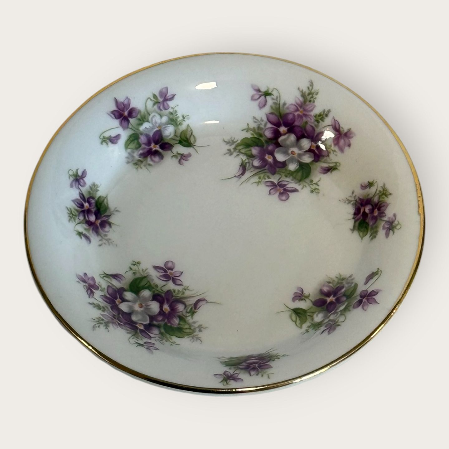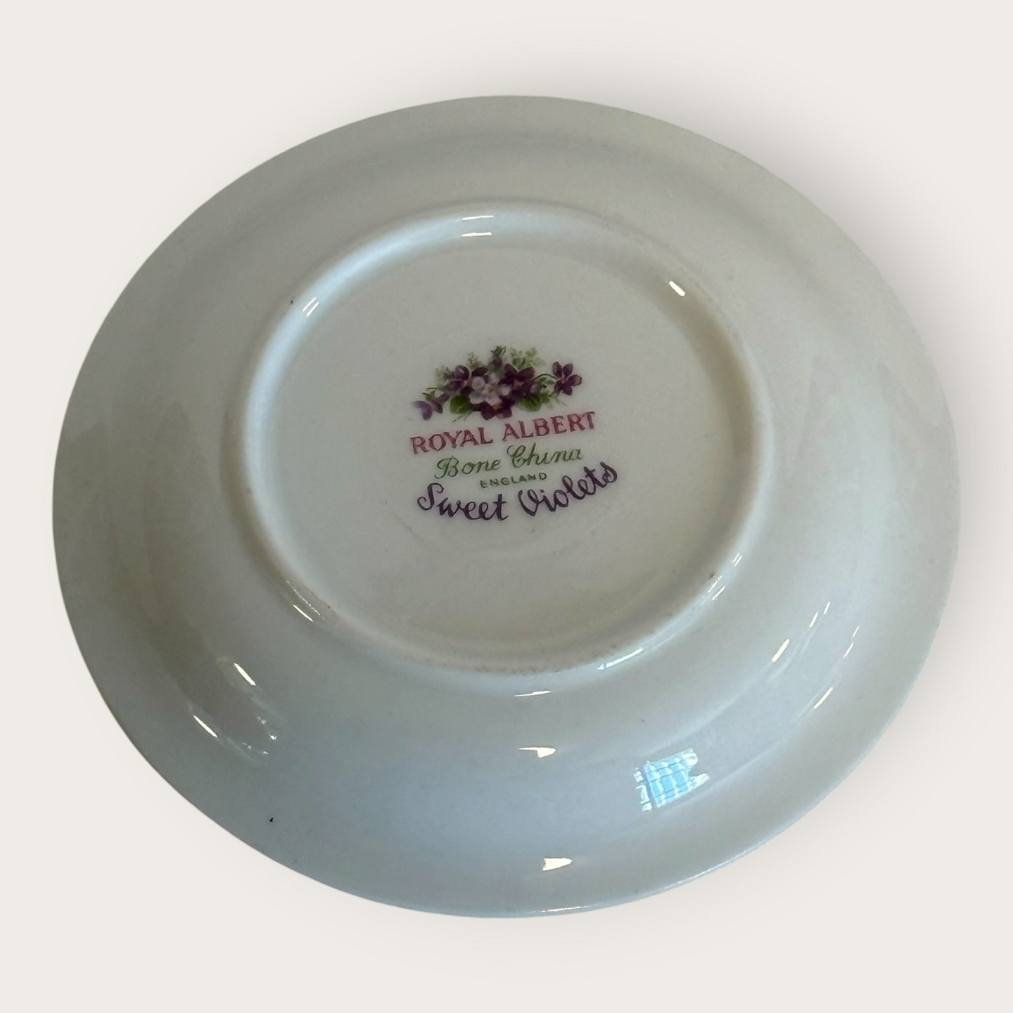 Beskrivelse: Royal Albert, Bone China, Sweet violets, Mark viol, lille asiet, kuvertsmør, diameter 9cm*Perfekt stand*