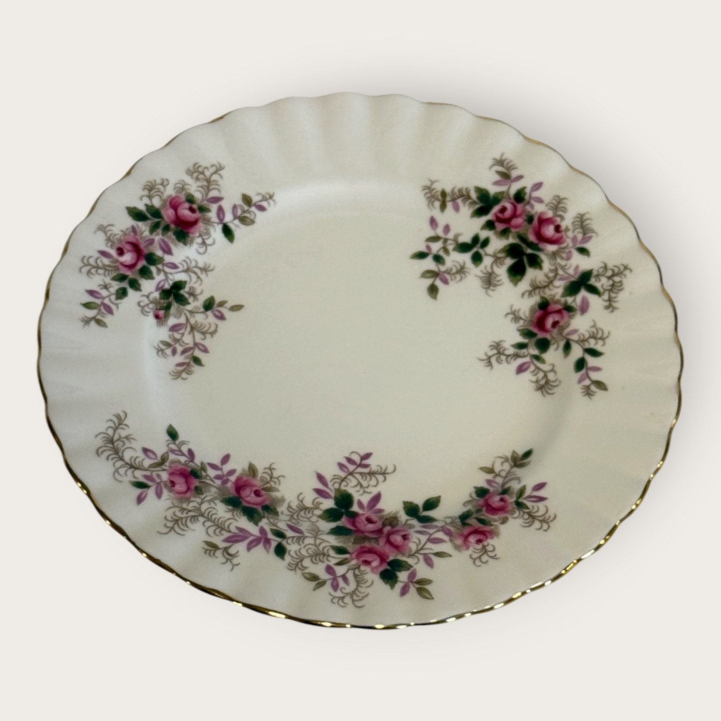 Beskrivelse: Royal Albert, Bone China, Lavender Rose, kagetallerken, 16cm i diameter *Perfekt stand*