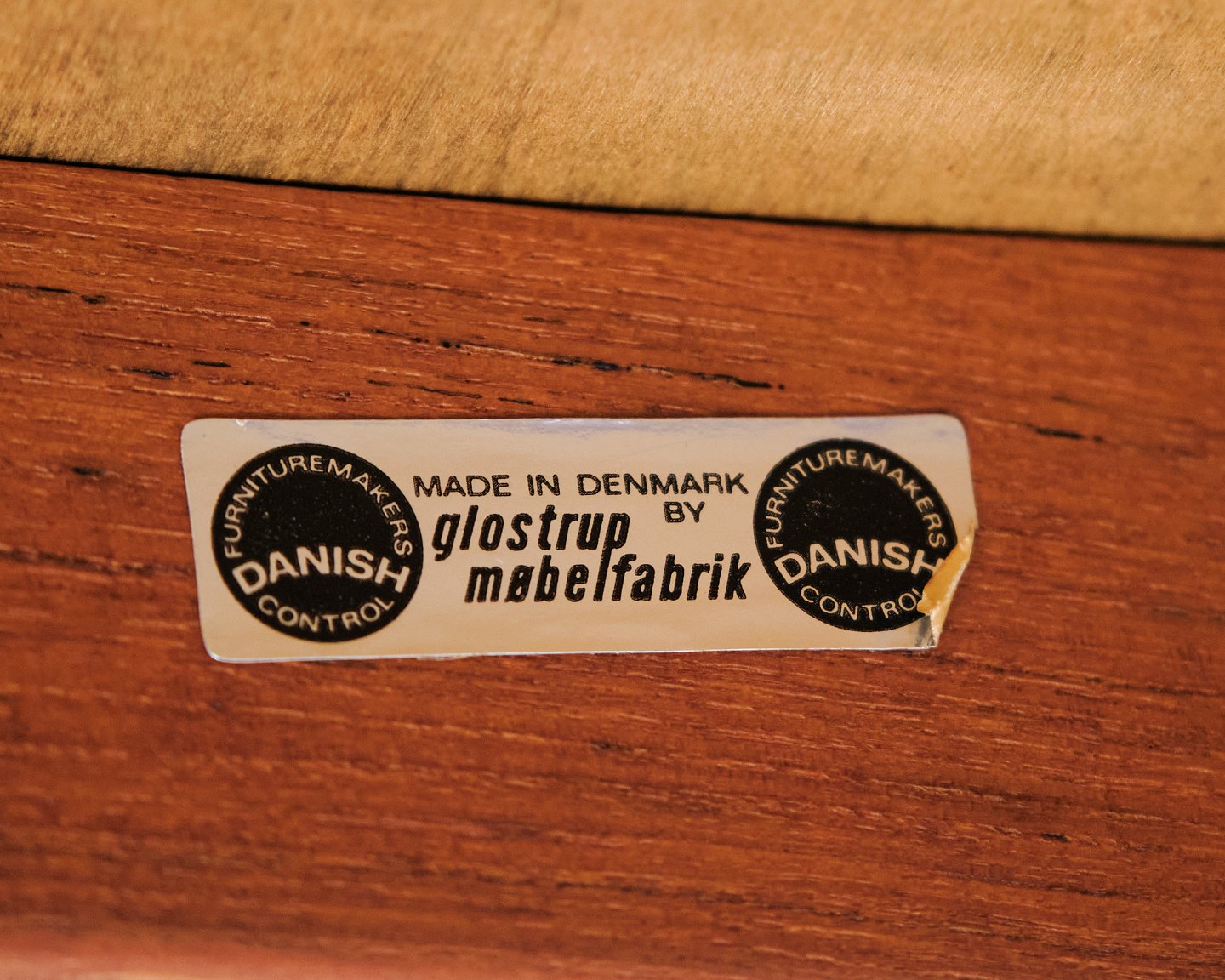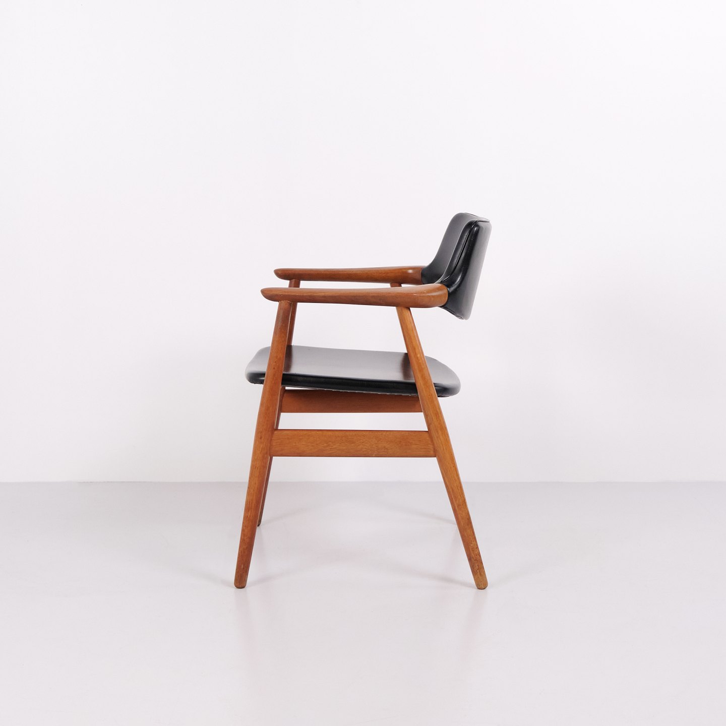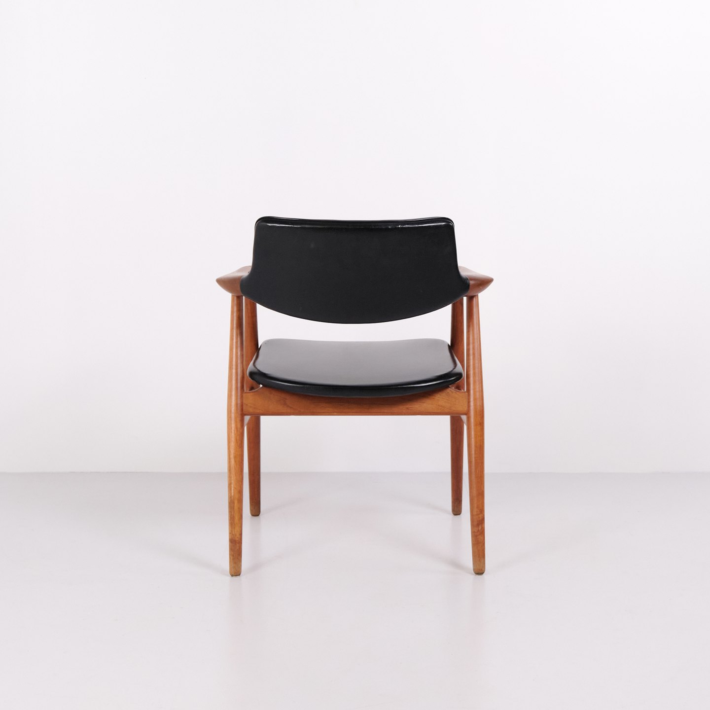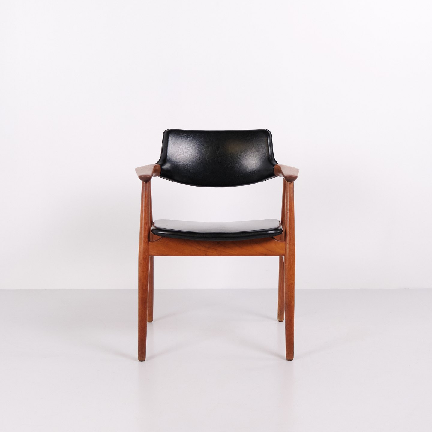 Beskrivelse: Sæt af 6 GM11 spisestuestole designet af Svend Aage Eriksen for Glostrup Møbelfabrik i 1960’erne. Stolene er udført i massiv teak med sort læder på sæde og ryg. Model GM11 er kendt for de organiske linjer, let svungne armlæn og høj siddekomfort. Et klassisk dansk design med elegant snedkerarbejde og flotte proportioner, velegnet til både spisebord og mødelokale. Sættet sælges kun samlet.
