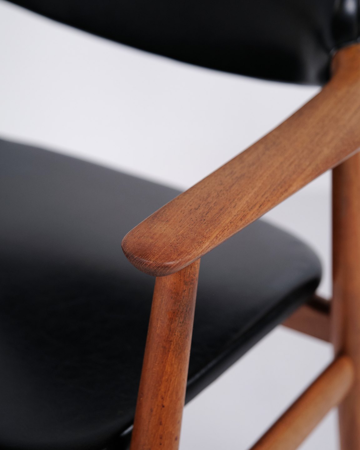Sæt af 6 Spisestuestole Model GM11 i Teak og Sort Læder, Svend Aage Eriksen for Glostrup Møbelfabrik, 1960erne
