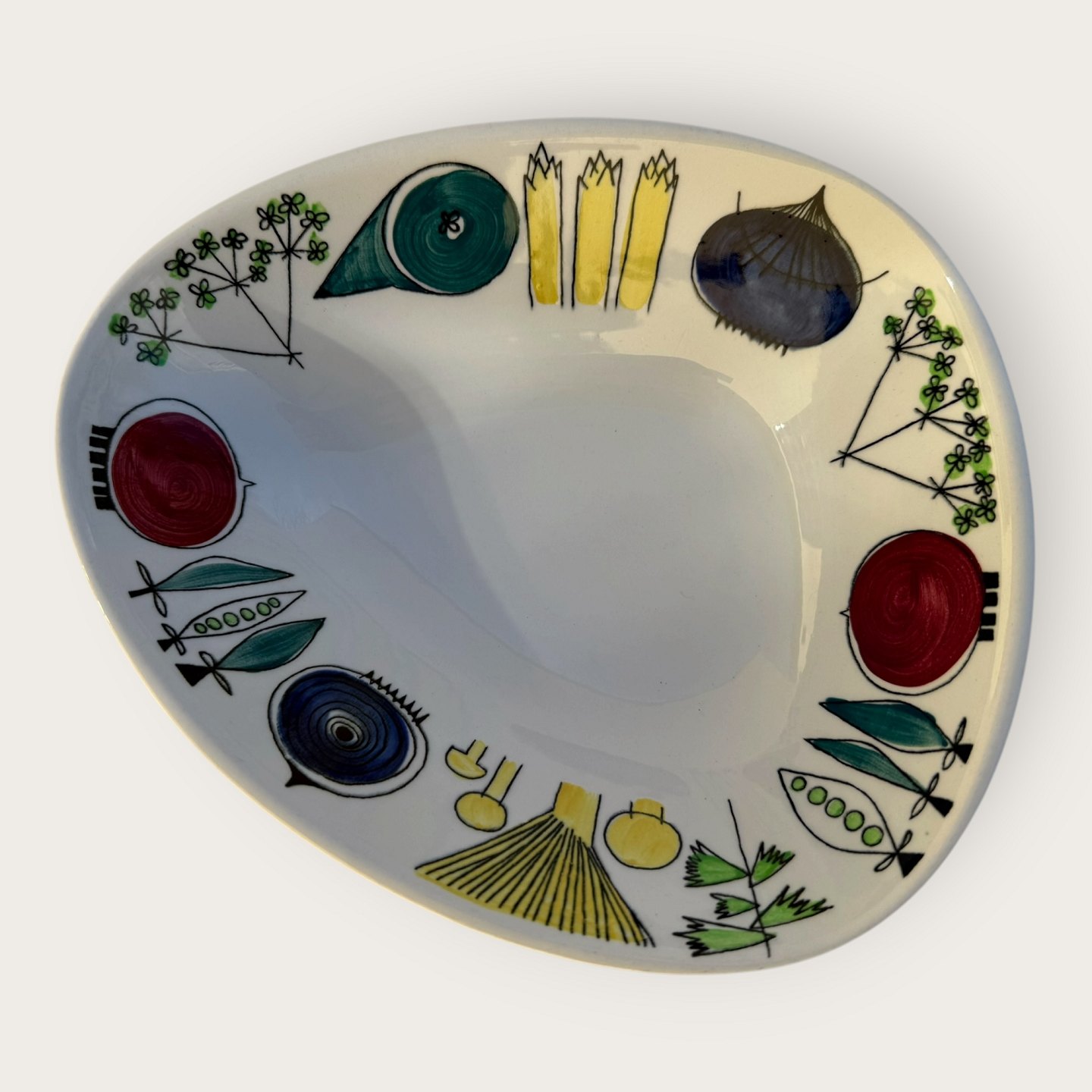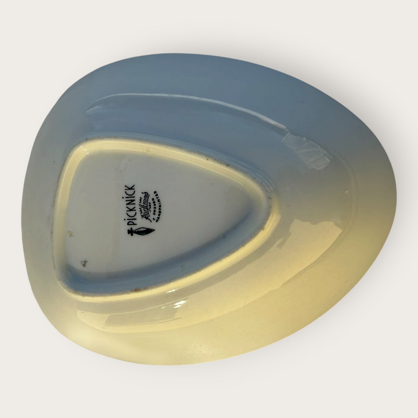 Beskrivelse: Rørstrand, Picknick, skål i afrundet trekantet form, Mål 20,5x17,5cm, 6cm høj, Design Marianne Westmann *Pæn stand*