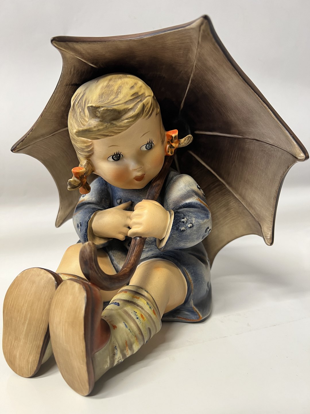 Beskrivelse: Hummel / Goebel figur: Siddende pige med paraply.