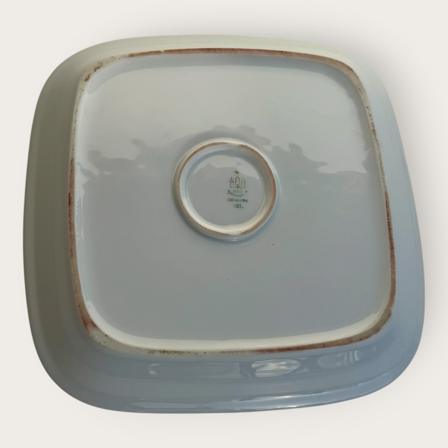 Beskrivelse: Bing & Grøndahl, Leda, Kvadratisk fad, #101, Form 676, 23,5x23,5cm, Design Ebbe Sadolin *Perfekt stand*