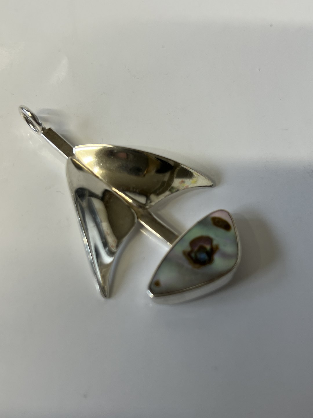 Beskrivelse: Vedhæng med en abalone i Sterlingsølv