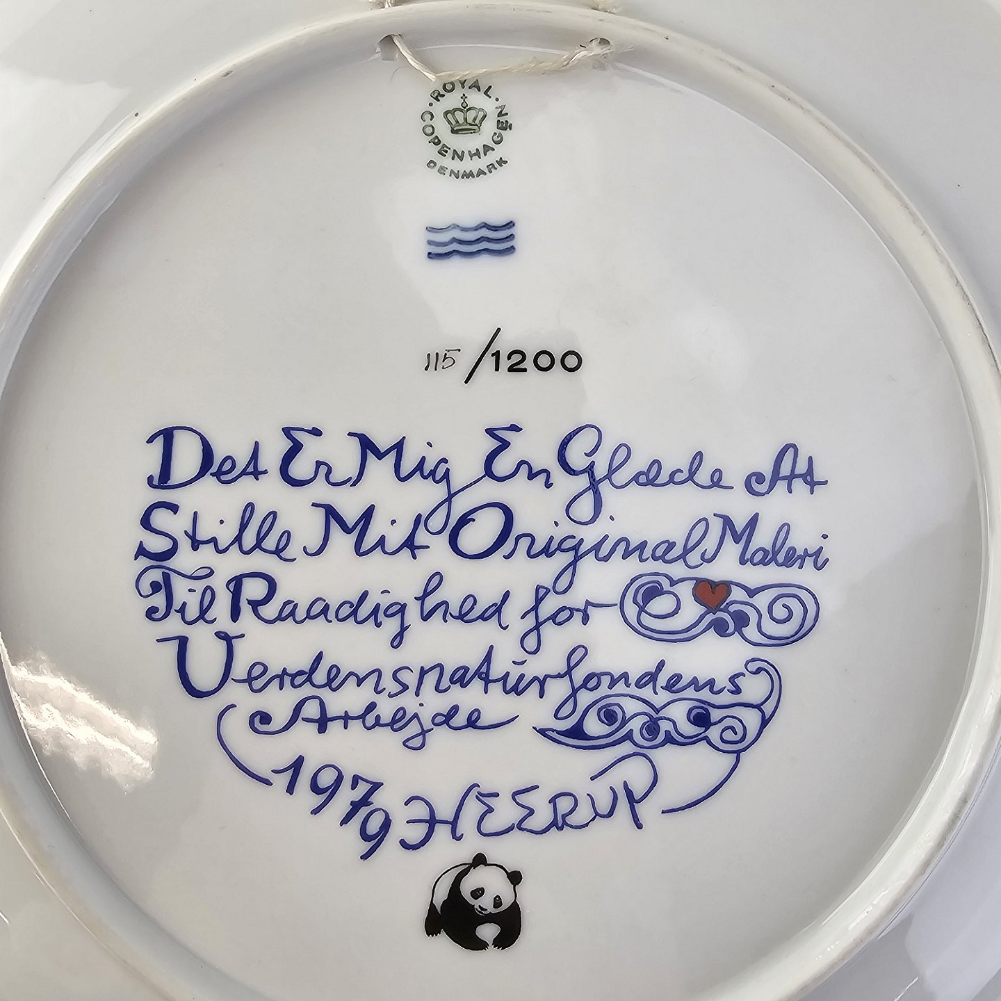 Signeret Heerup 1979 og dedikeret til Verdensnaturfonden
